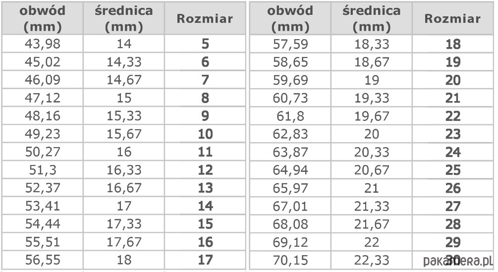 Rozmiar dostępny w outlecie: 20 (obwód 59 mm)