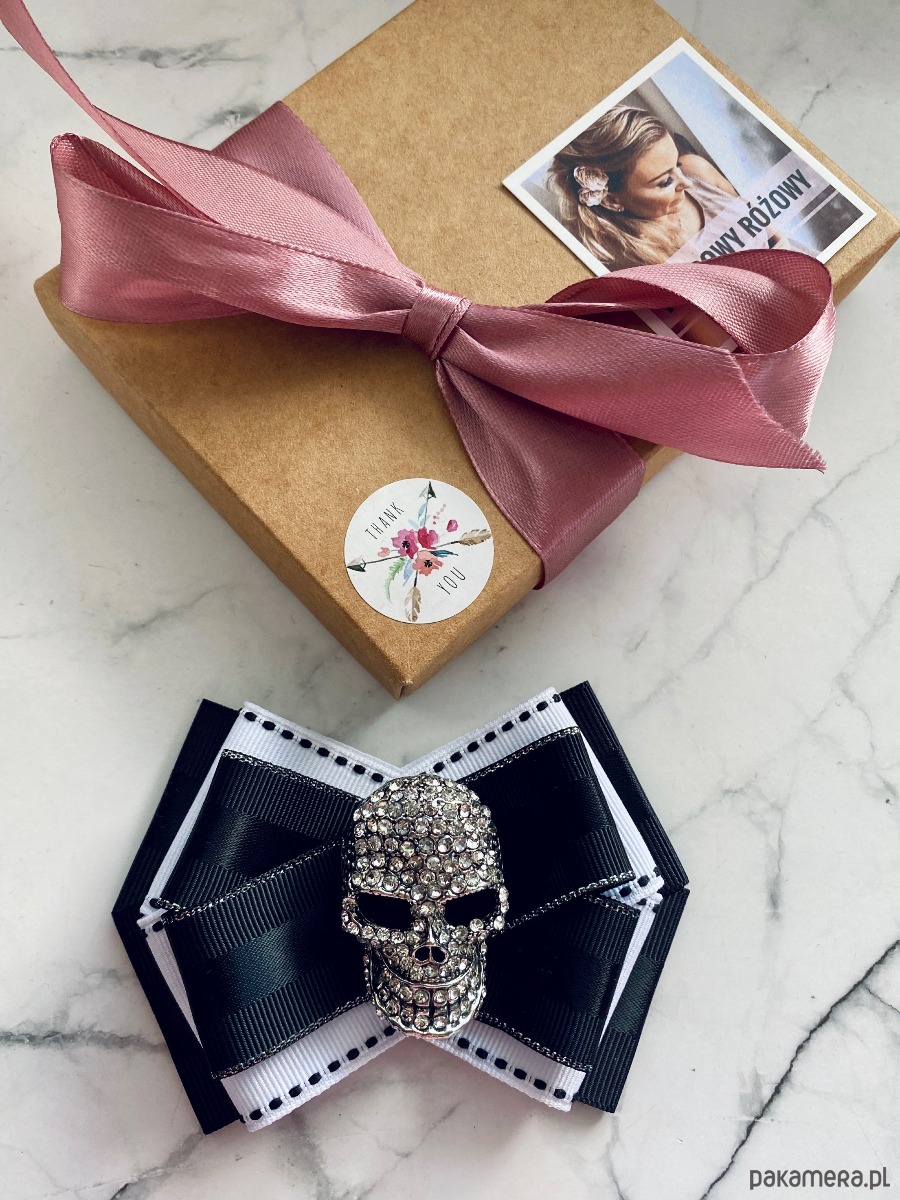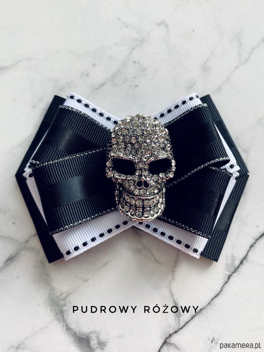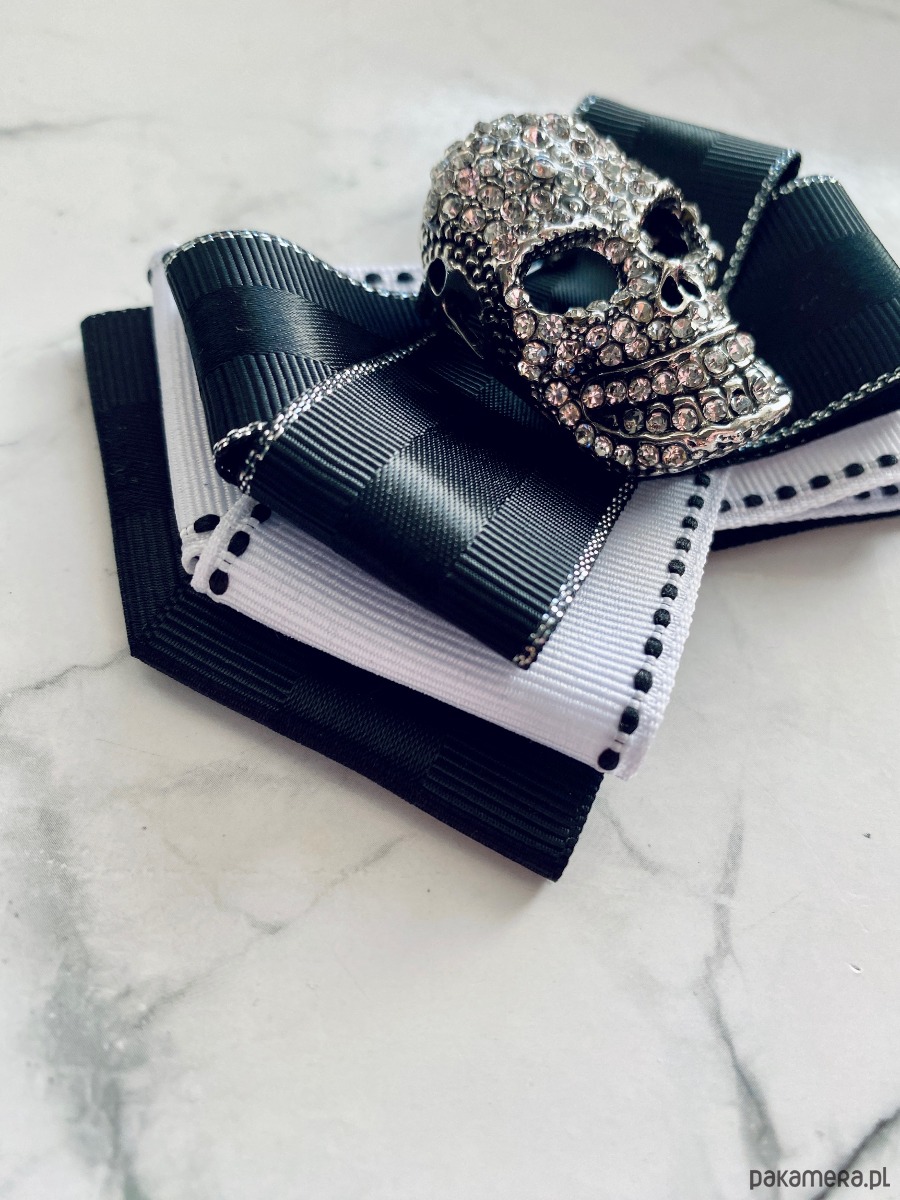 Piękna dekoracyjna ozdoba na środku, okazała czaszką wysadzaną drobnymi kryształkami. Cudnie błyszczą i odbijają światło.