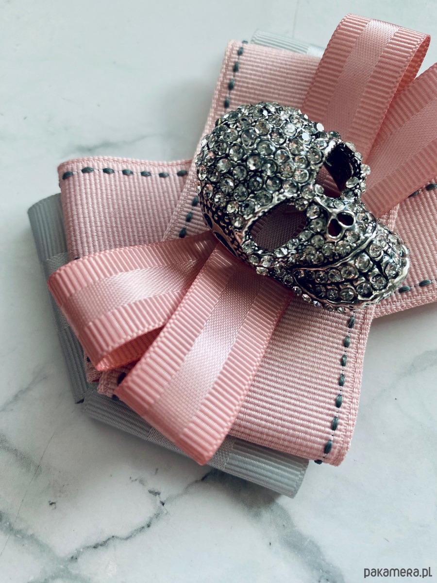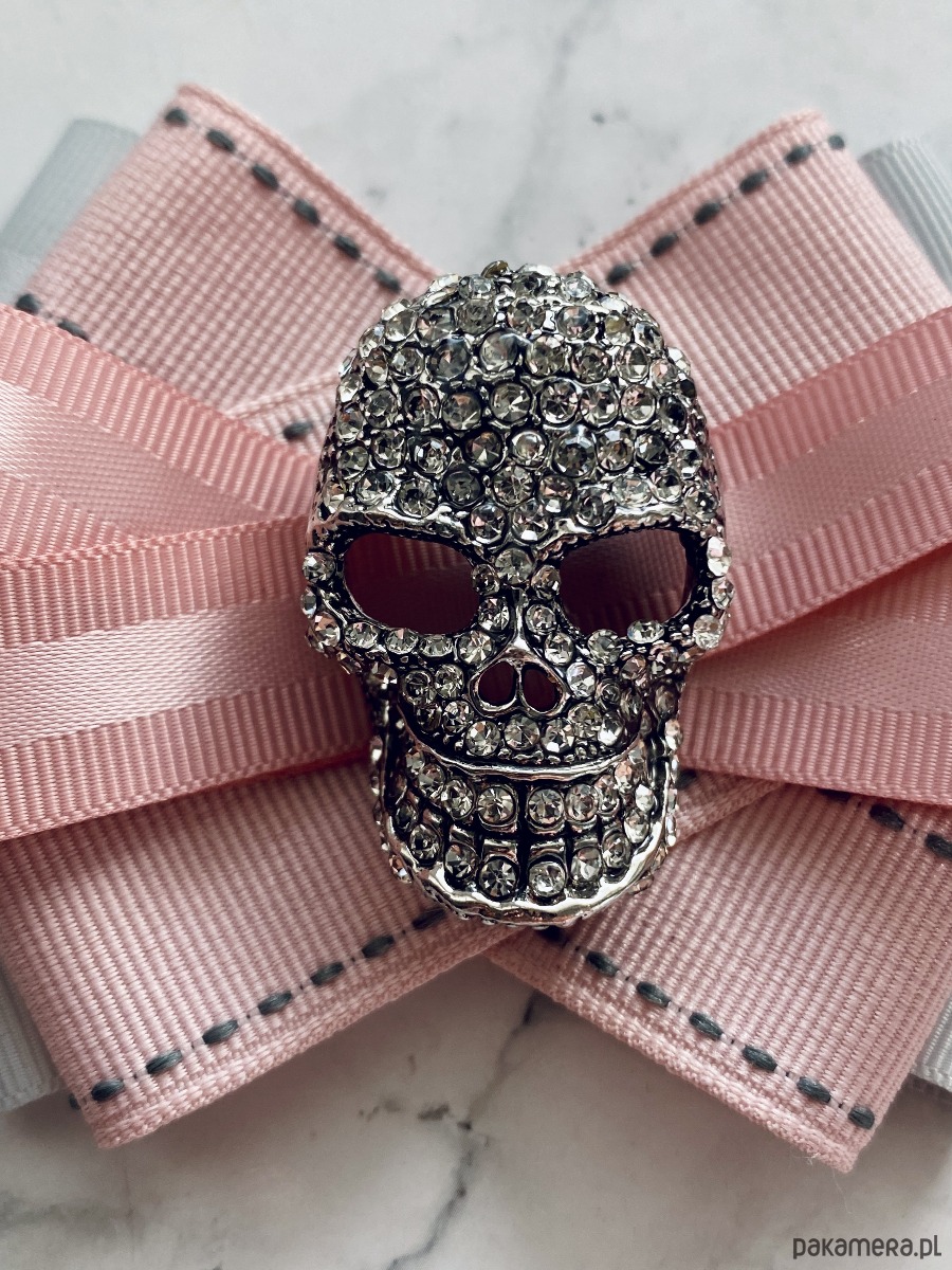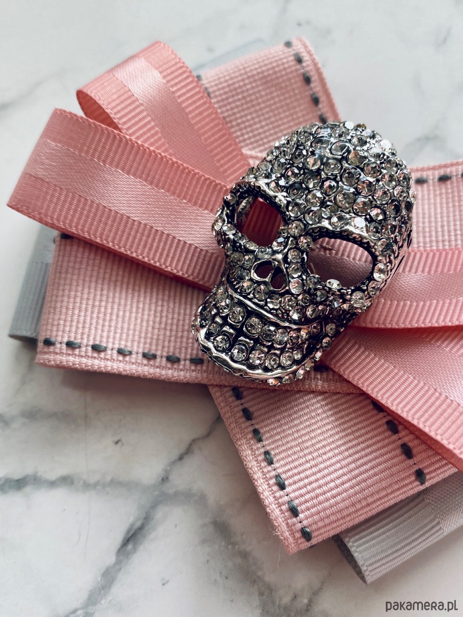 Piękna dekoracyjna ozdoba na środku, okazała czaszką wysadzaną drobnymi kryształkami. Cudnie błyszczą i odbijają światło.