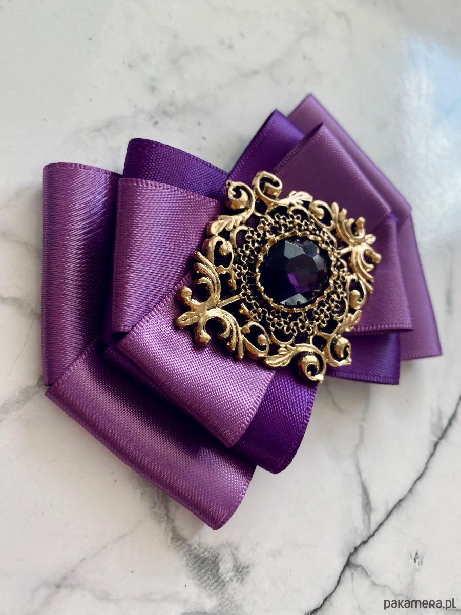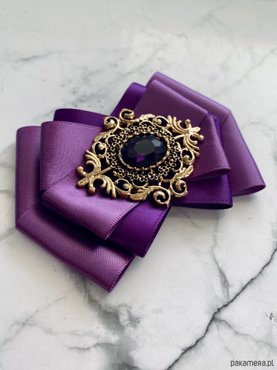 Broszka wykonana z wysokiej jakości taśm i dodatków.
