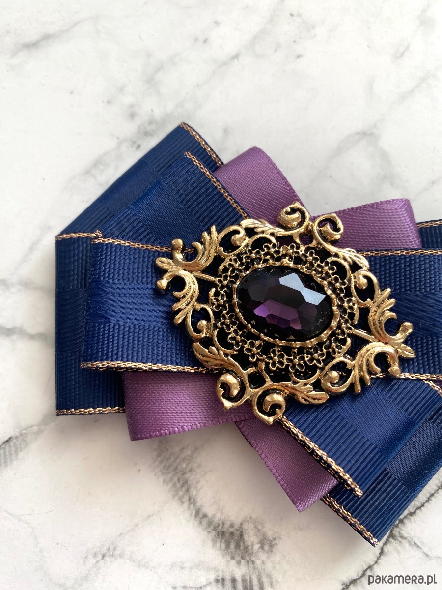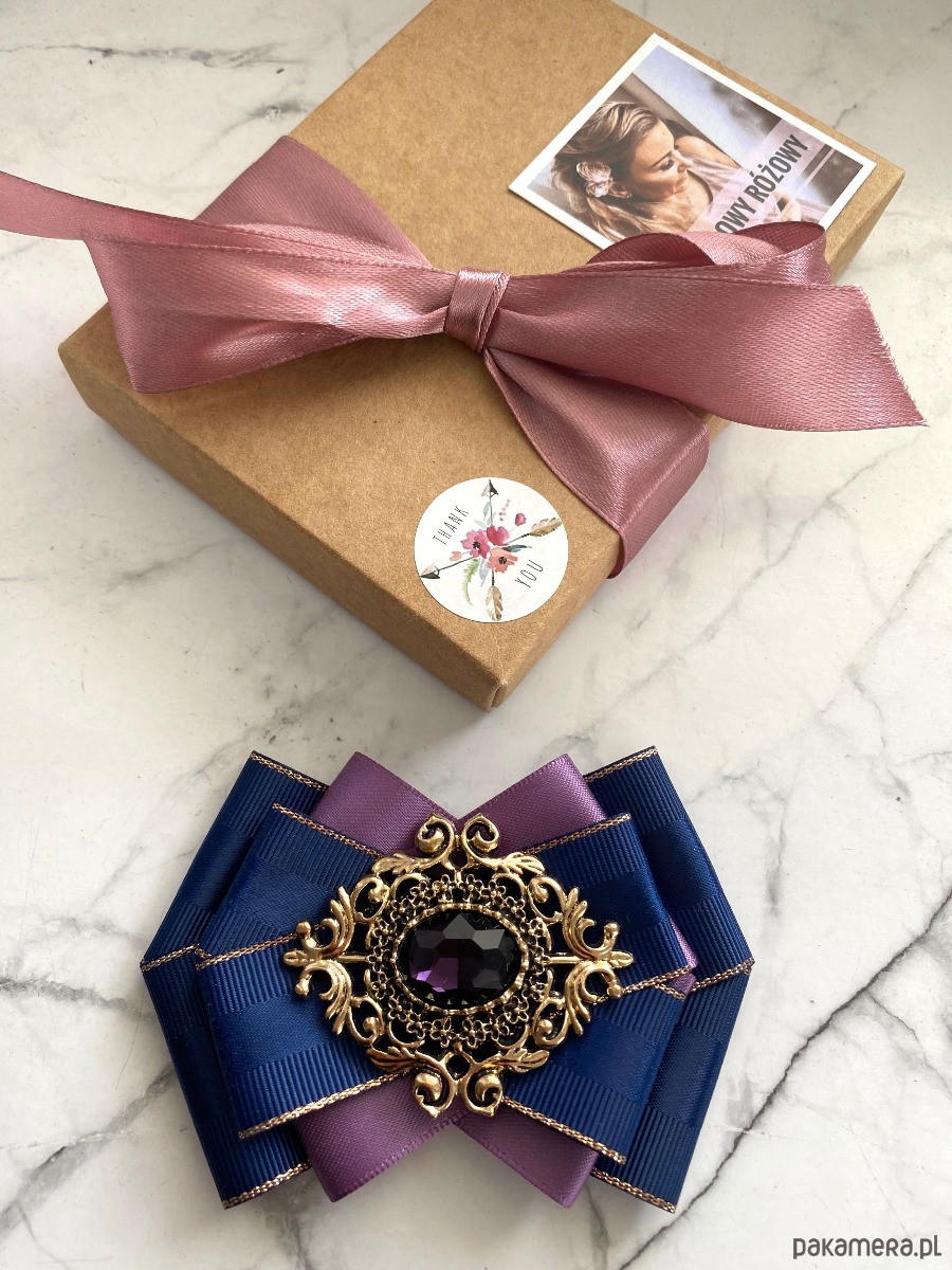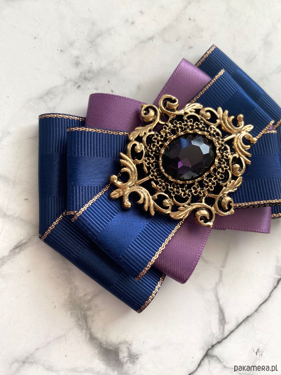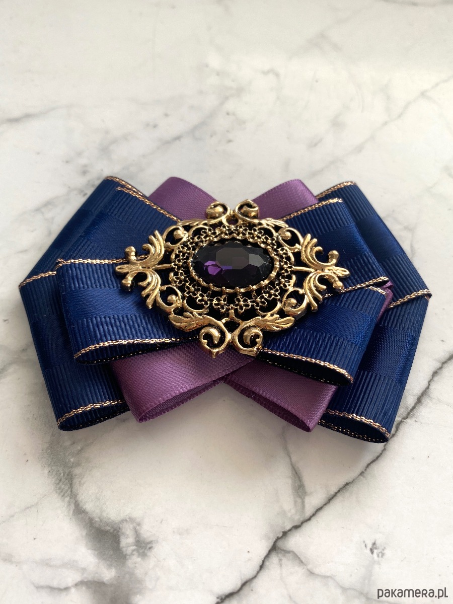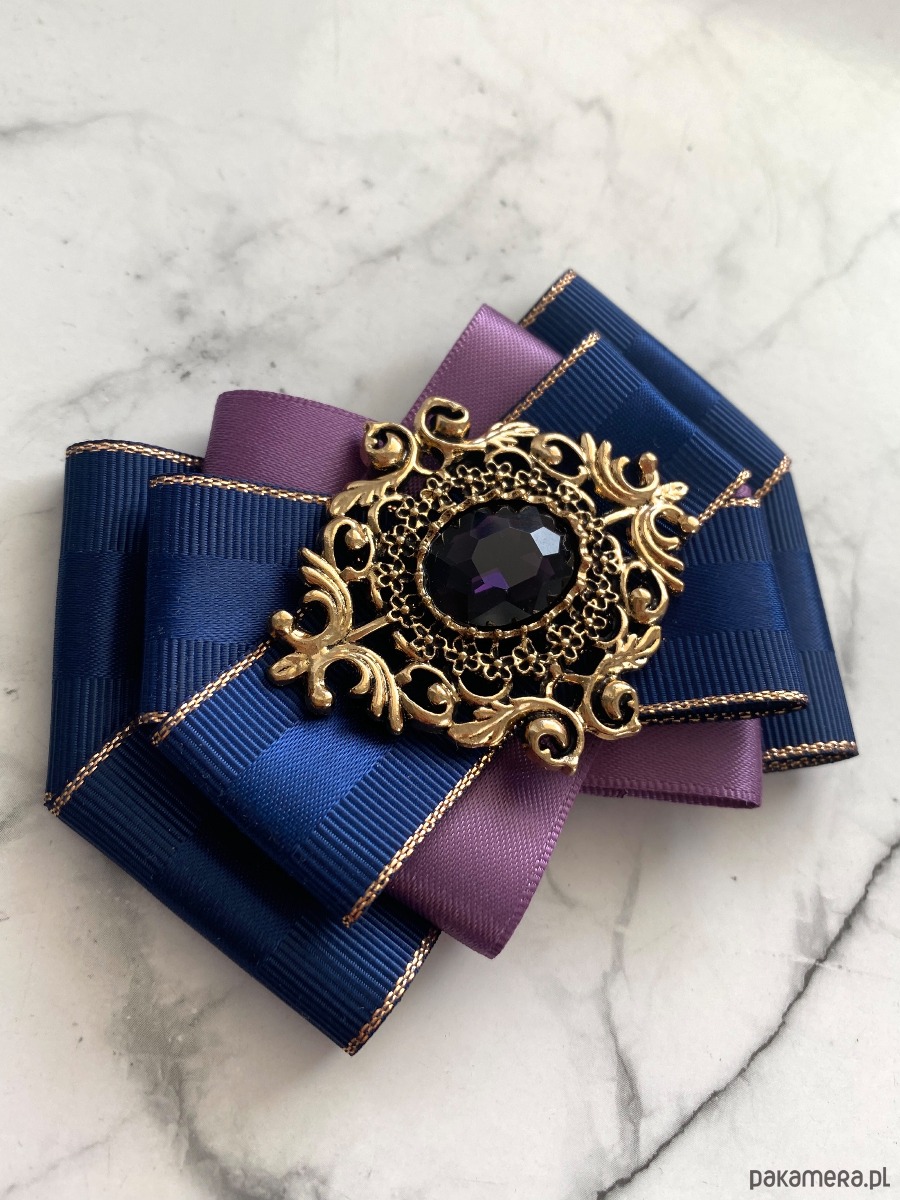 Broszka wykonana z wysokiej jakości taśm i dodatków.