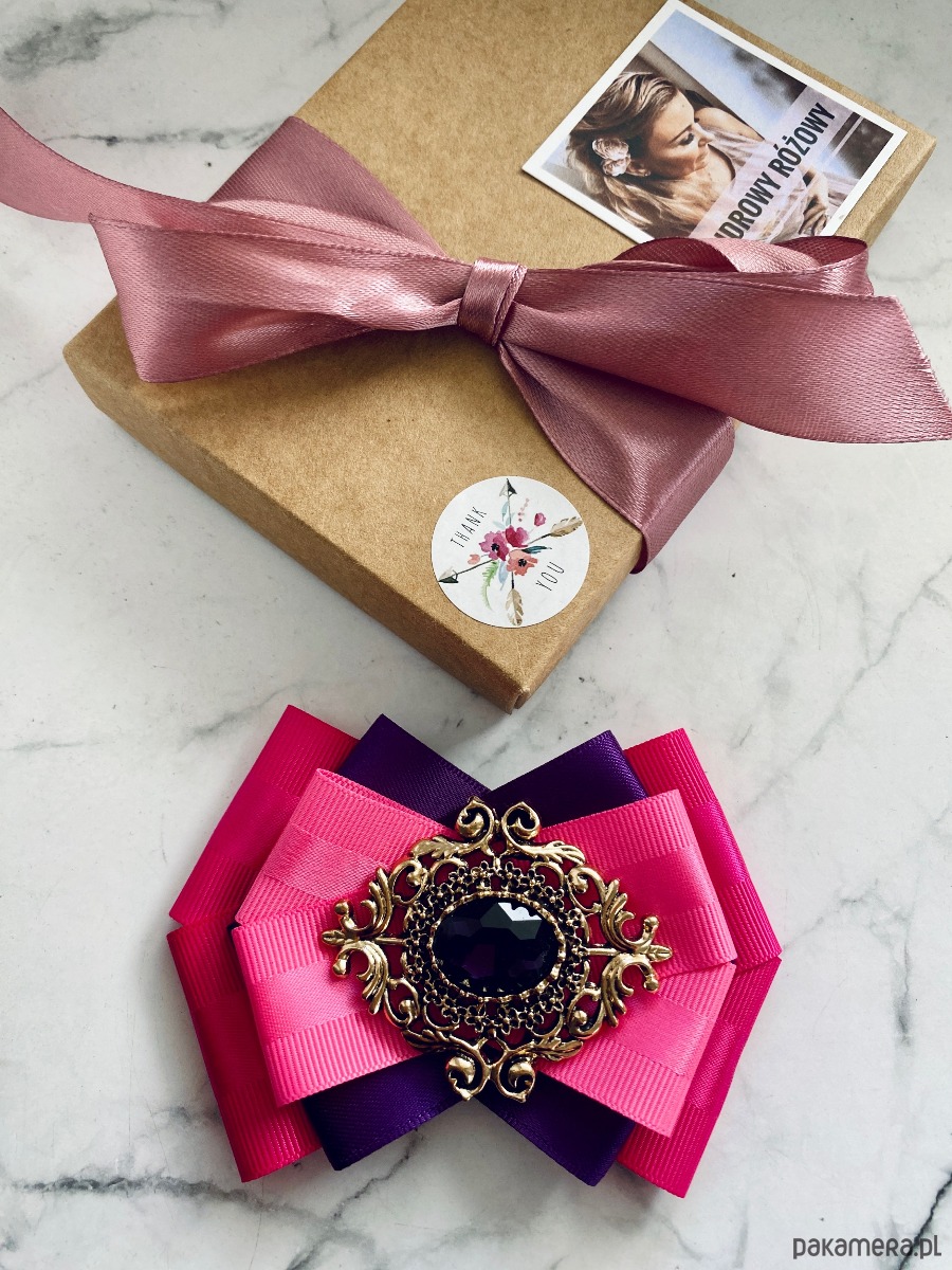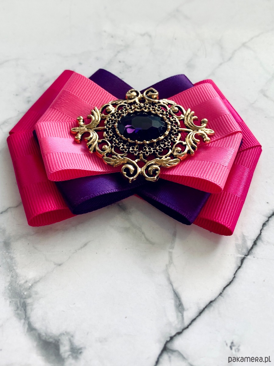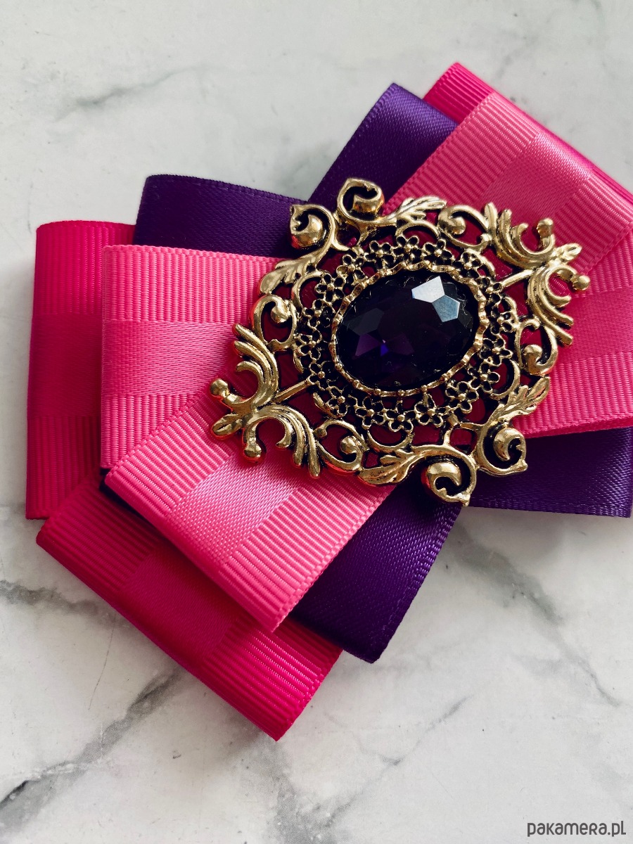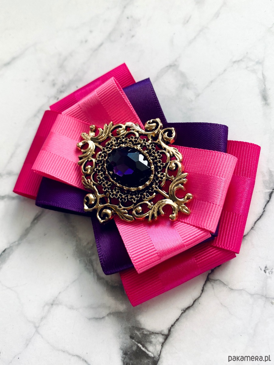 Broszka wykonana z wysokiej jakości taśm i dodatków.