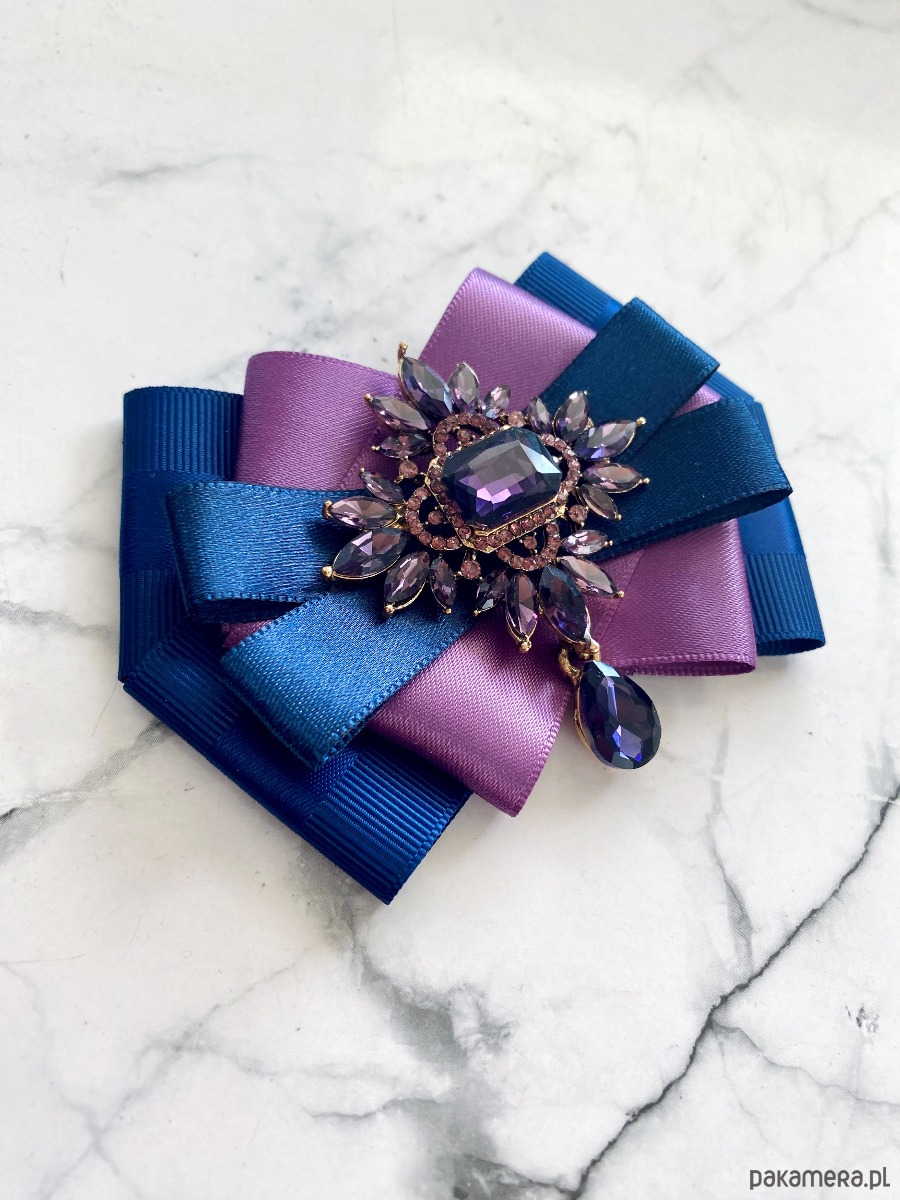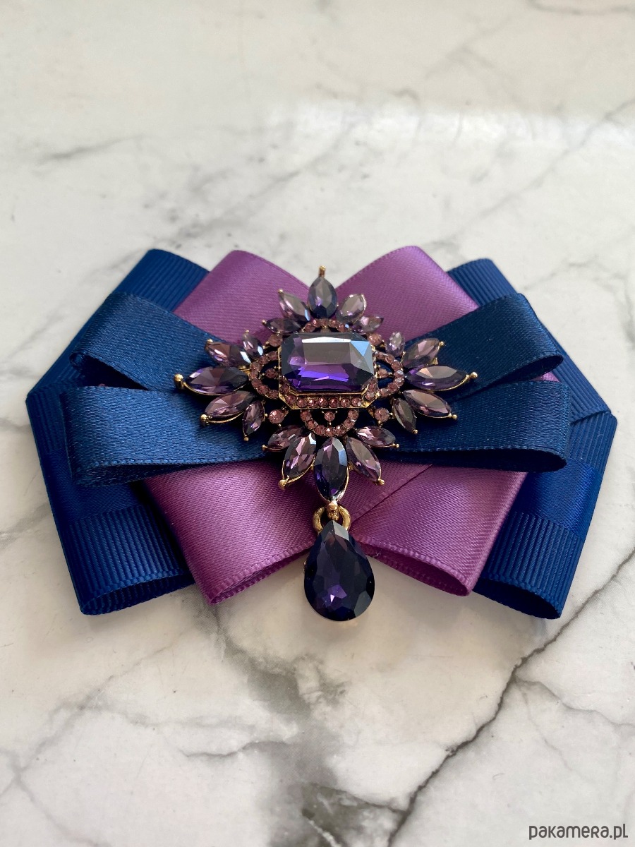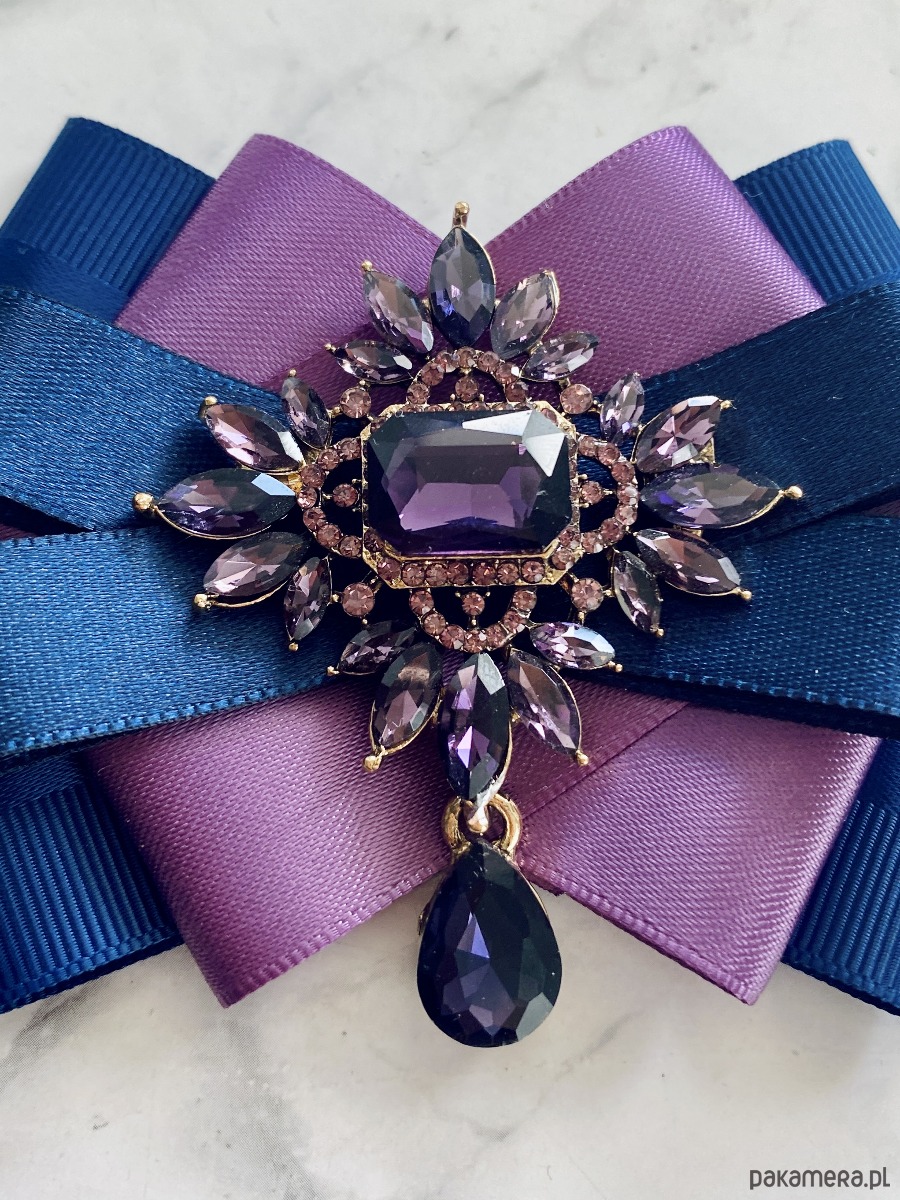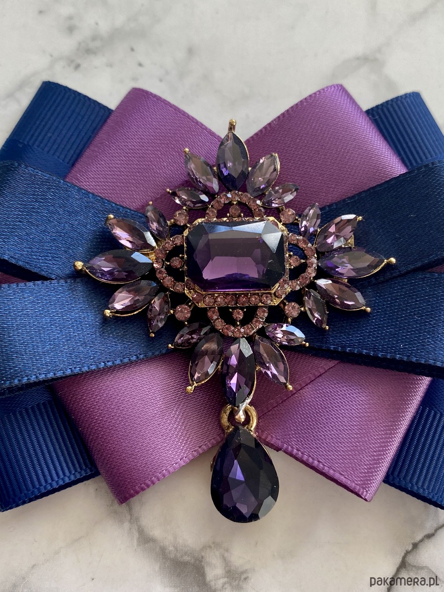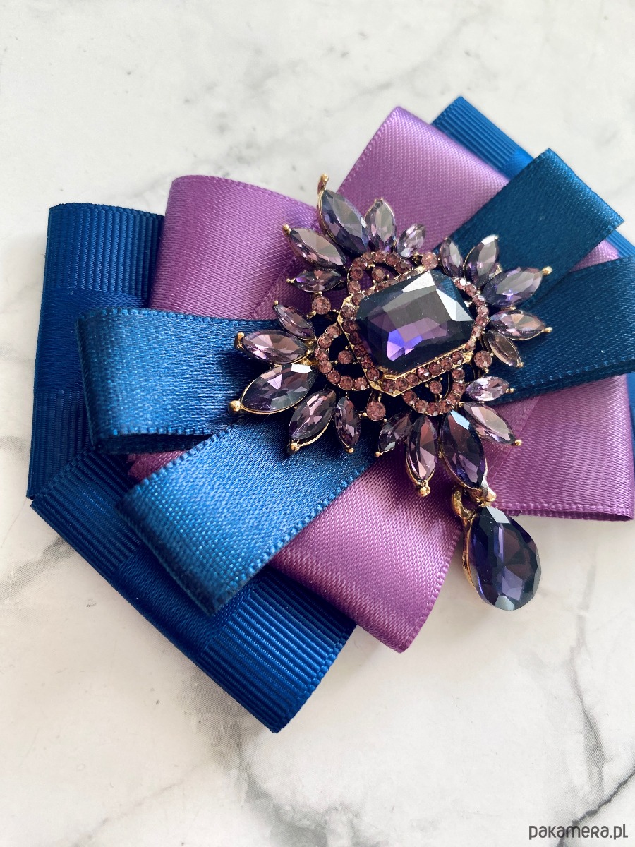 Broszka wykonana z wysokiej jakości taśm i dodatków.