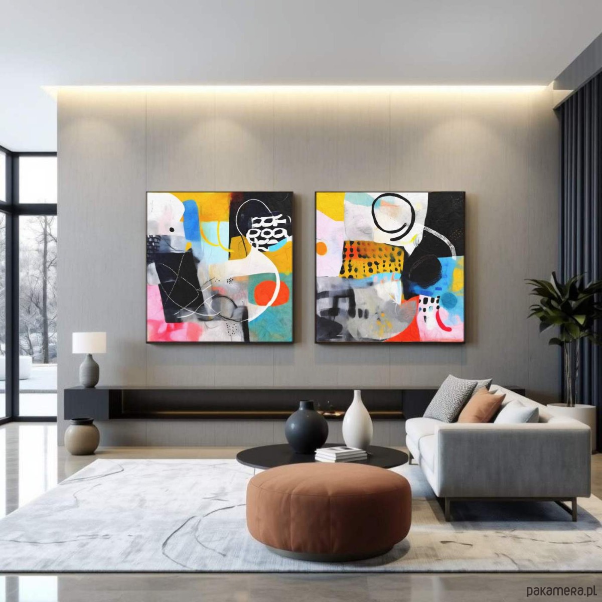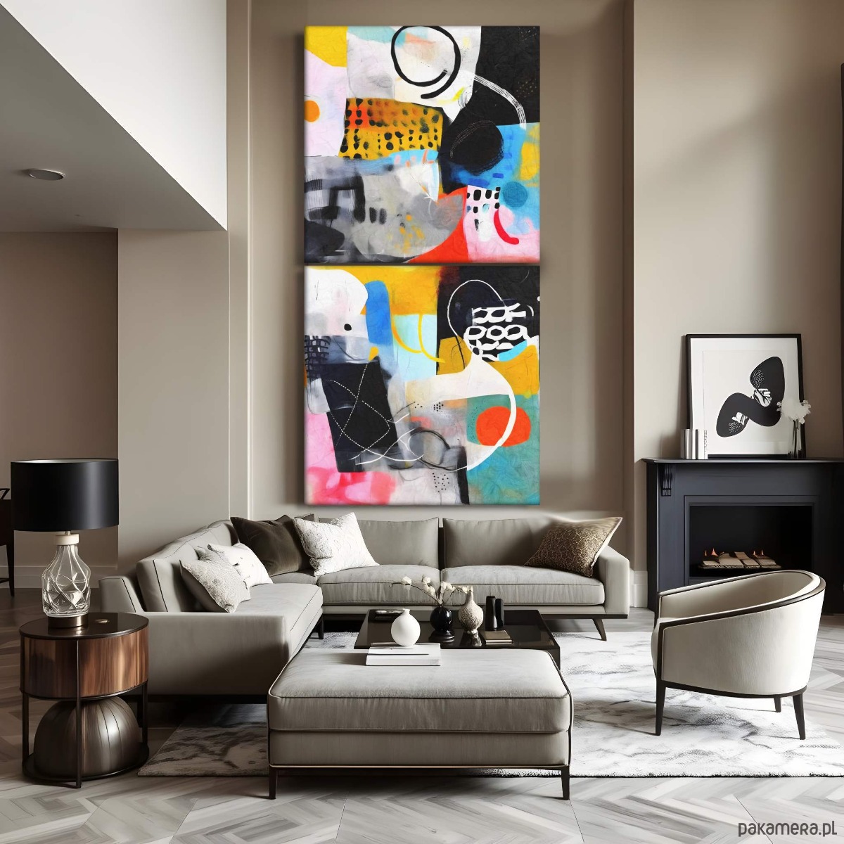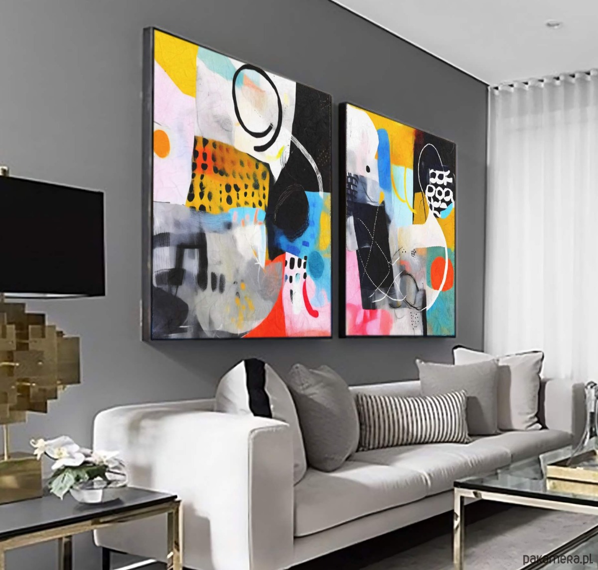 Nowoczesny duży obraz do salonu lub antresoli 80x160cm dyptyk Crazy CRAZY