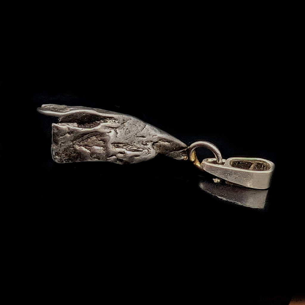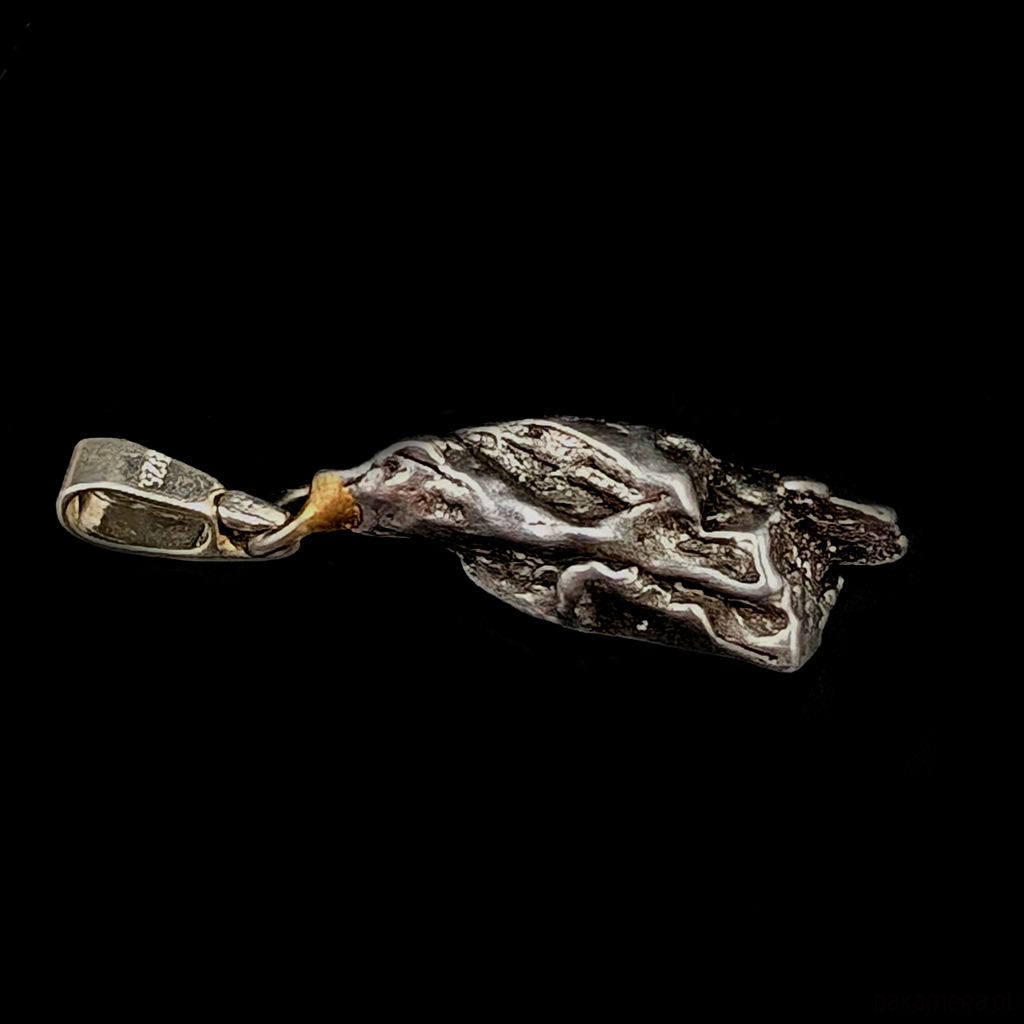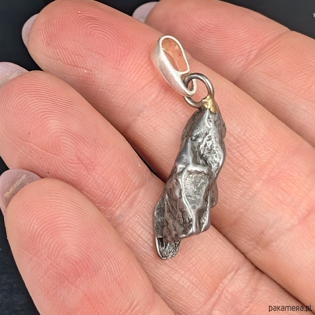 Wisiorek z meteorytem żelaznym Campo del Cielo, który znaleziono w 1576 roku w Argentynie. Krawatka srebro 925, oksydowane. Uniwersalny, dla niego lub dla niej. Wymiary 21 x 7 mm. Długość max 30 mm. Waga wisiora 4,4 g. Do meteorytu dołączona zostanie metryka z datą, miejscem spadku i wagą. Wisiorek zostanie zapakowany w ozdobne pudełeczko.