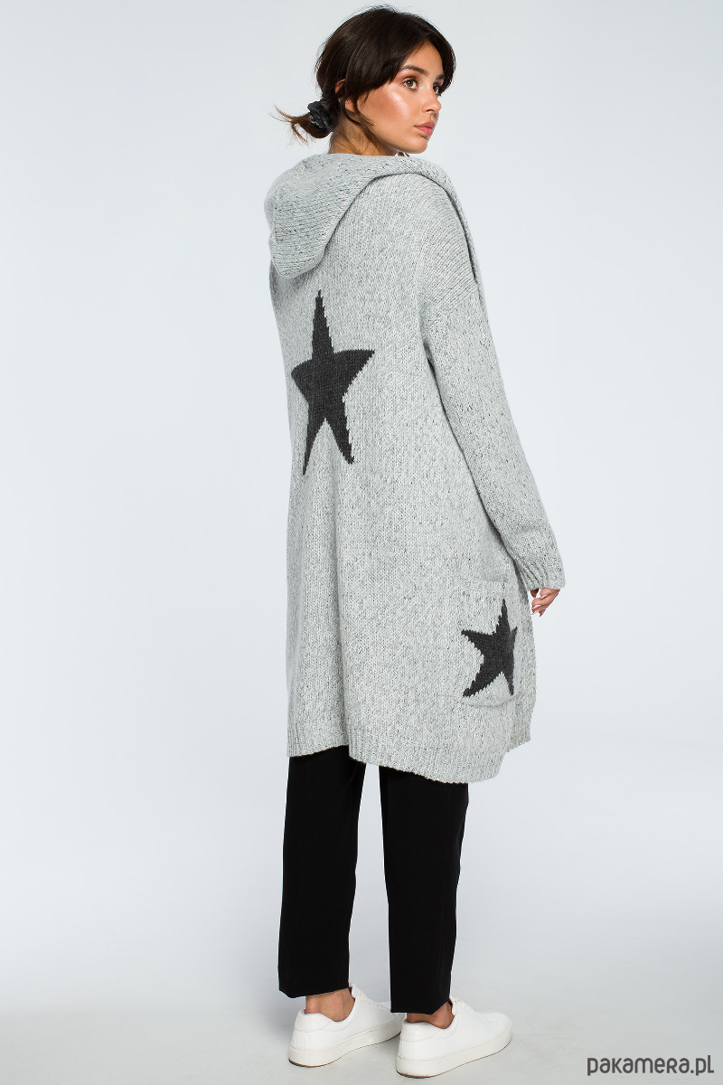 Ten kardigan przykuwa uwagę swoim luźnym sportowym charakterem i wyjątkowym motywem gwiazdy na plecach i obu kieszeniach, a dodatkowo jest niezwykle miły w dotyku i wygodny w noszeniu.
