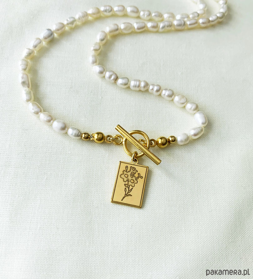 Niezapominajka- Naszyjnik- Perły- Kolekcja Flora
