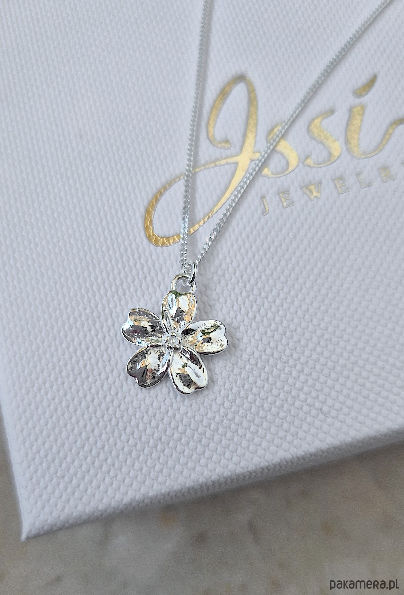Naszyjnik z zawieszką w kształcie niezapominajki.