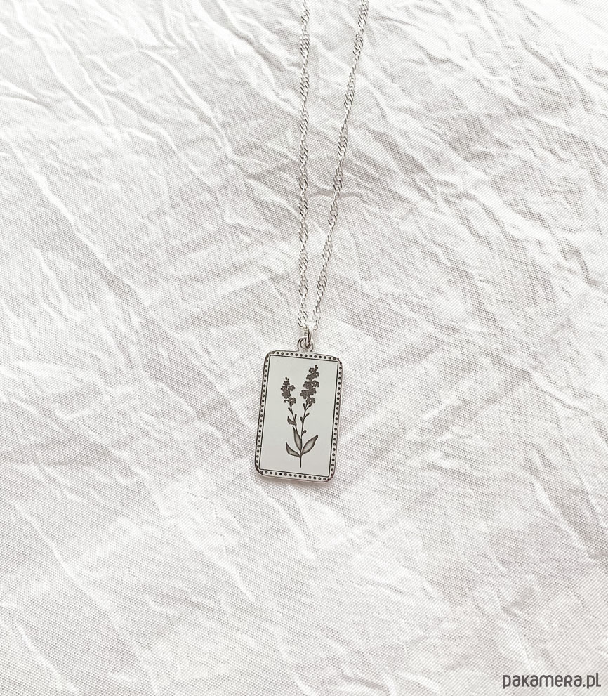 Prostokątna zawieszka z grawerem kwiatu niezapominajki