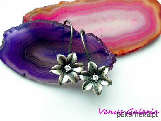 Delikatne i niezwykle urocze kolczyki srebrne w kształcie malutkich kwiatuszków.