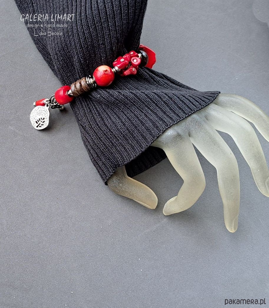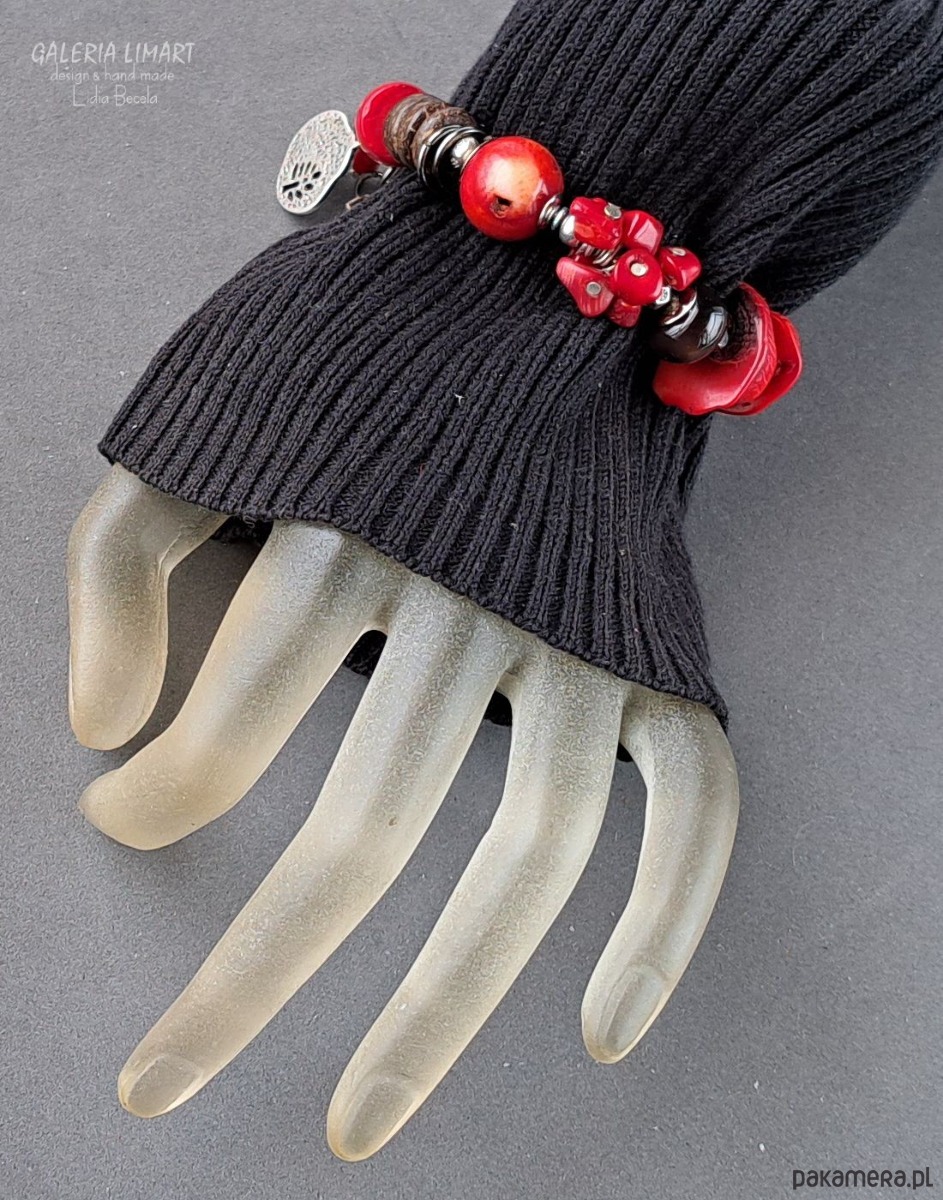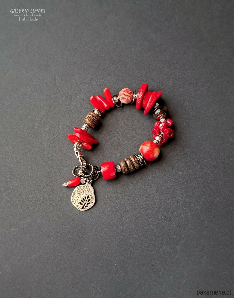 Niezwykła bransoleta boho z koralem i mixem minerałów bis prezent lux UNIKAT