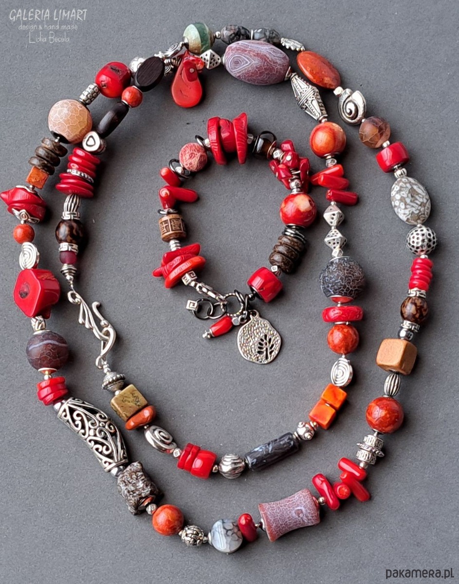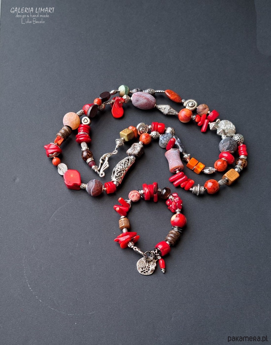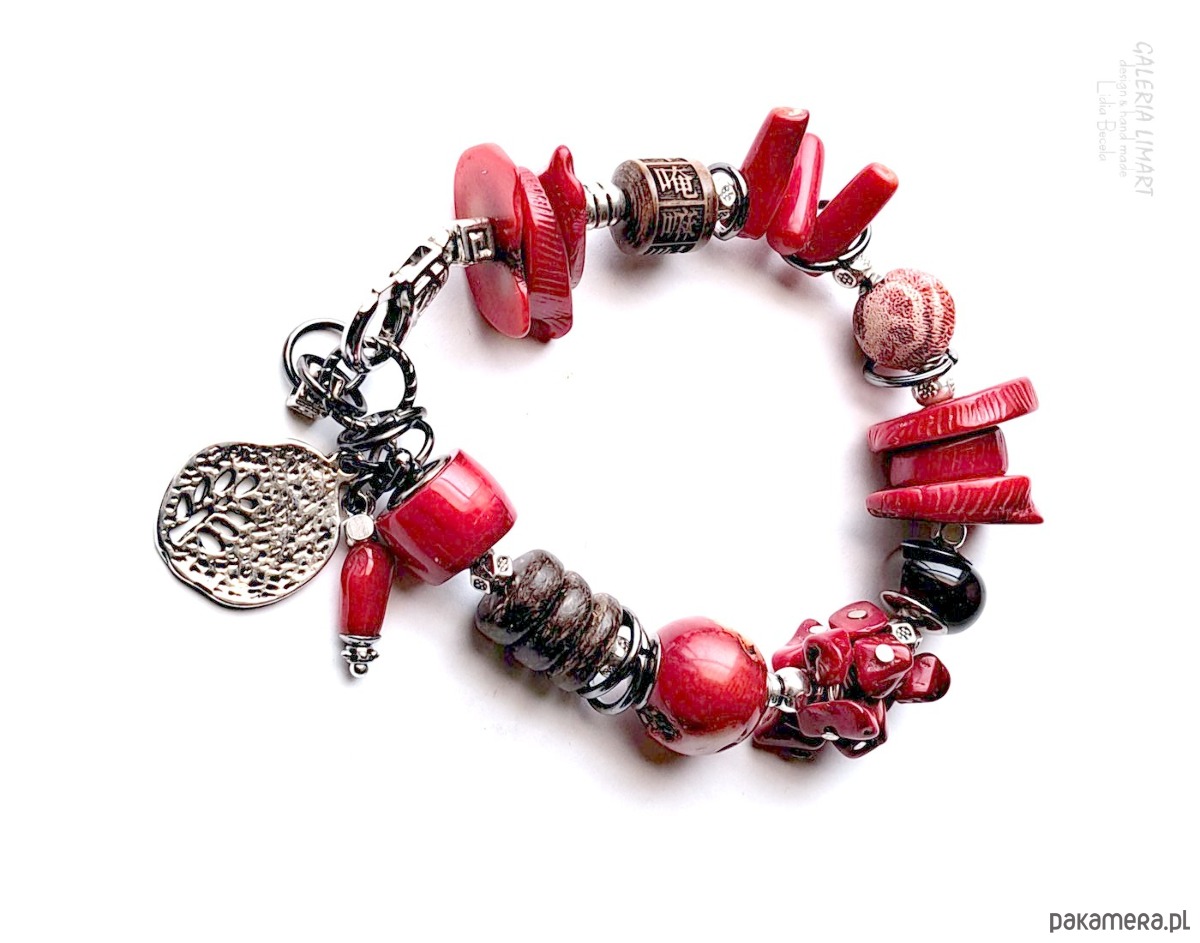 Niezwykła bransoleta boho z koralem i mixem minerałów bis prezent lux UNIKAT