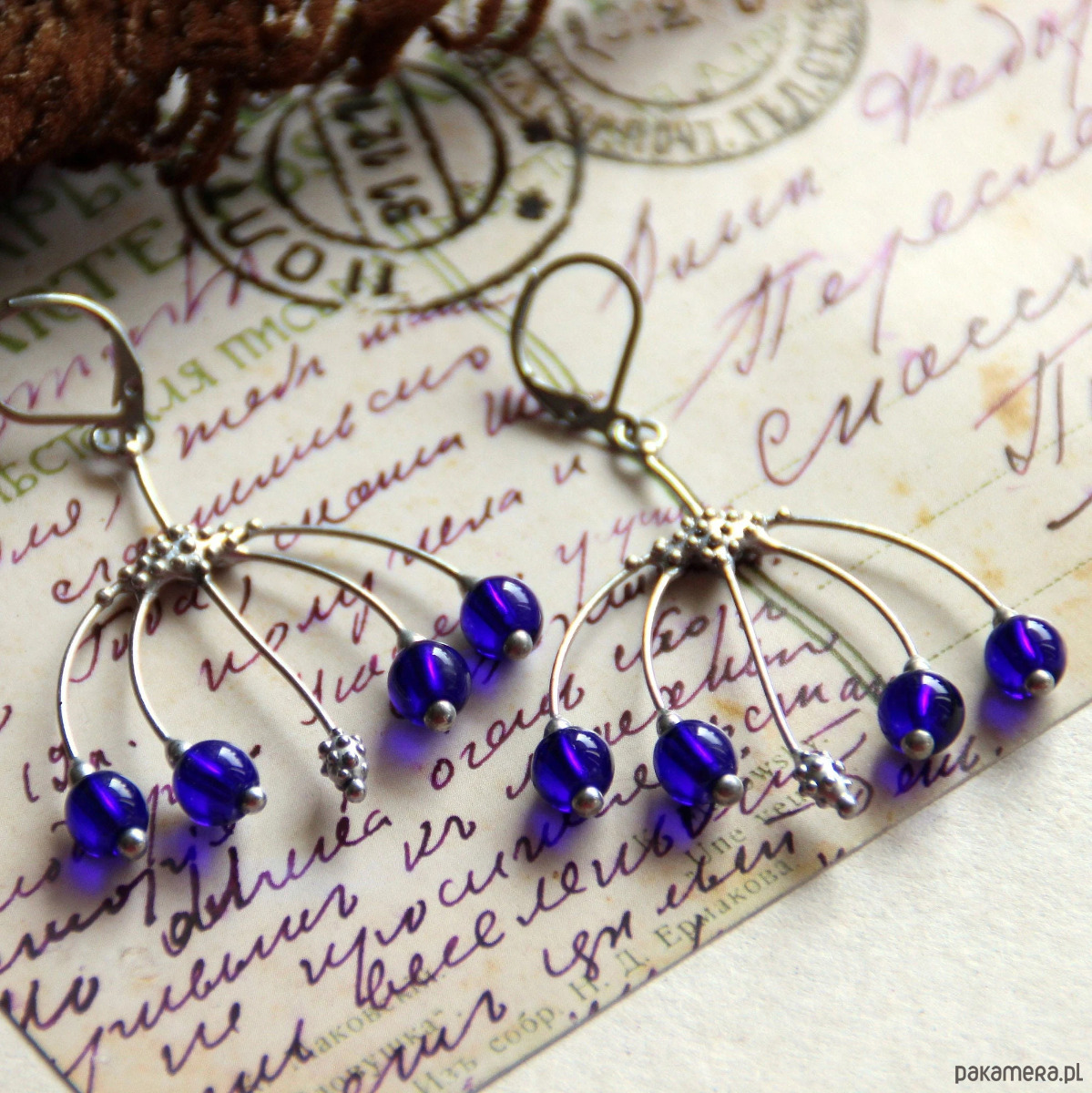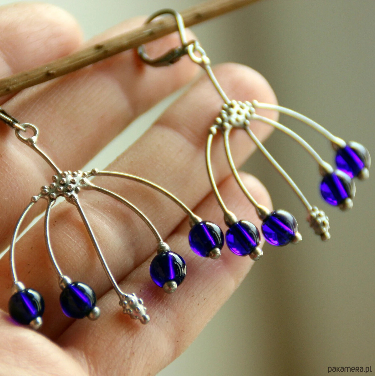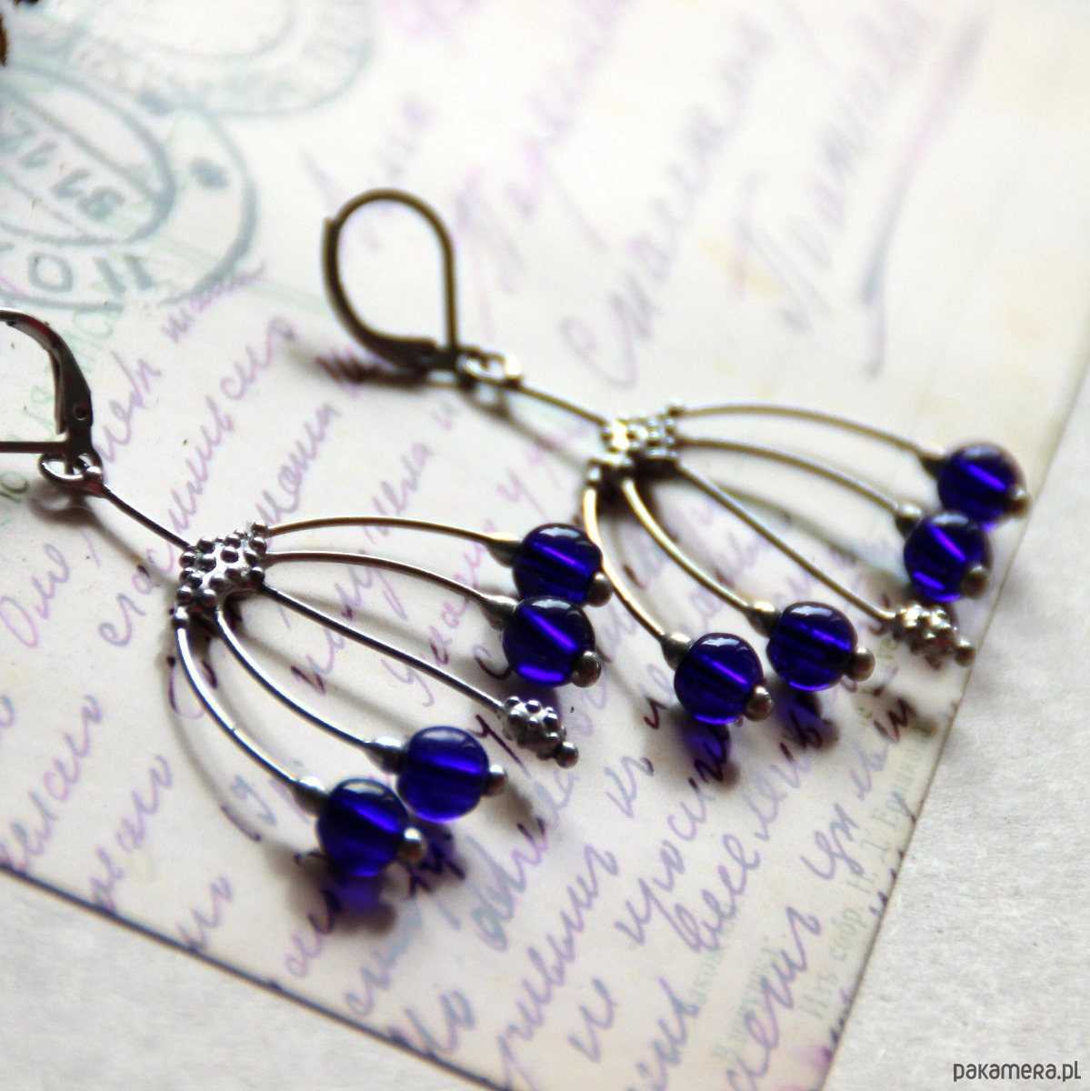Niezwykłe kolczyki leśnej wróżki w stylu boho z niebieskim szkłem