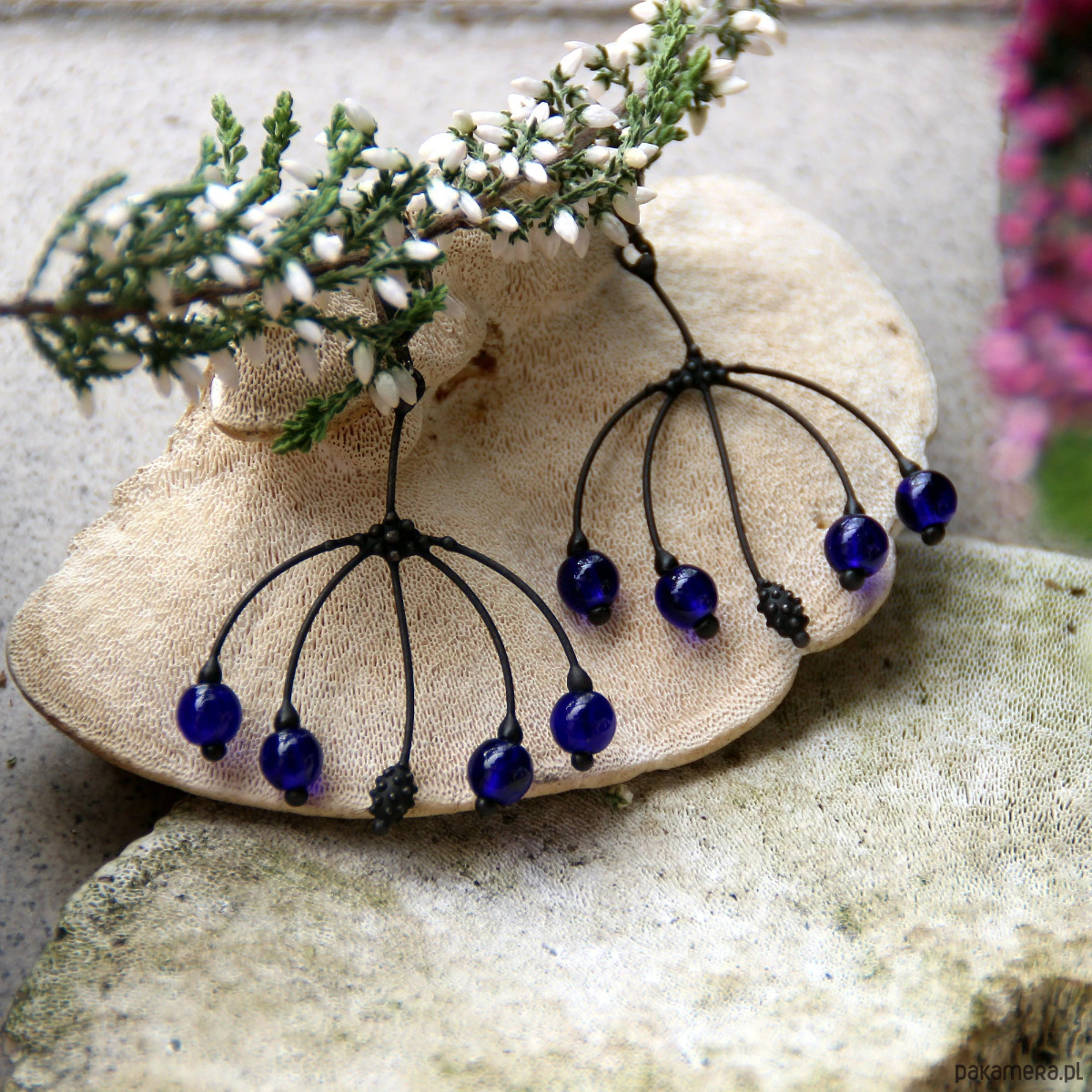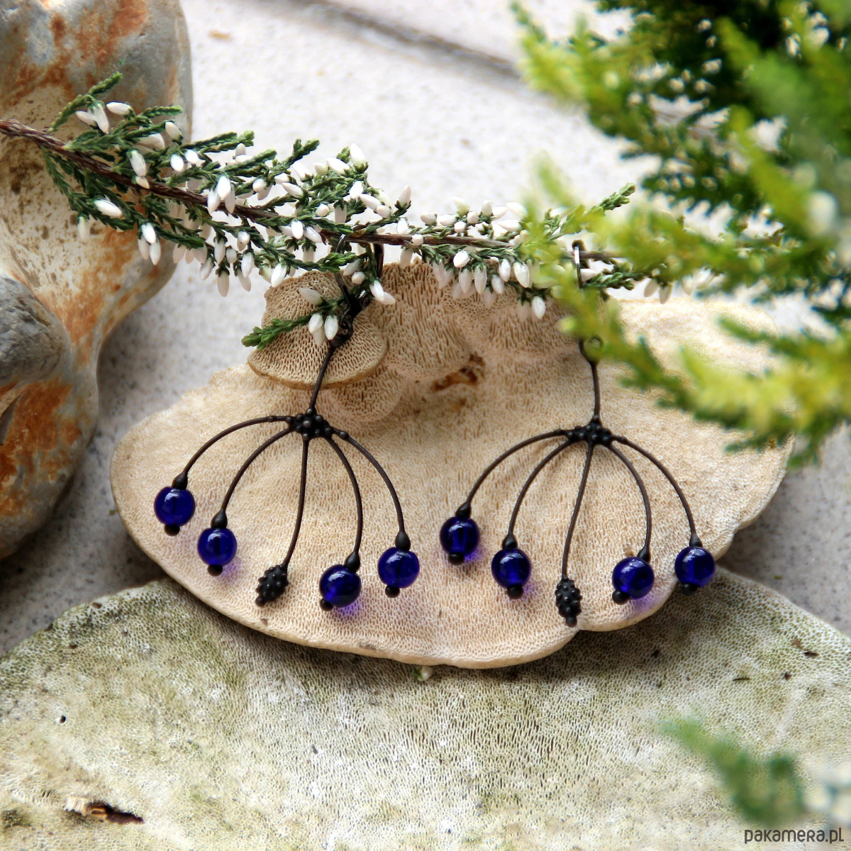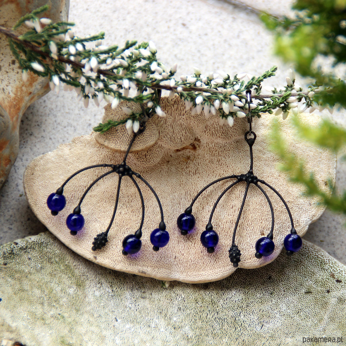 Niezwykłe kolczyki leśnej wróżki w stylu boho z niebieskim szkłem