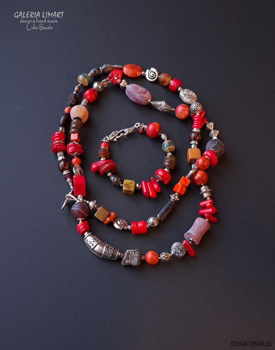 Niezwykły naszyjnik boho z koralem i mixem minerałów prezent lux UNIKAT