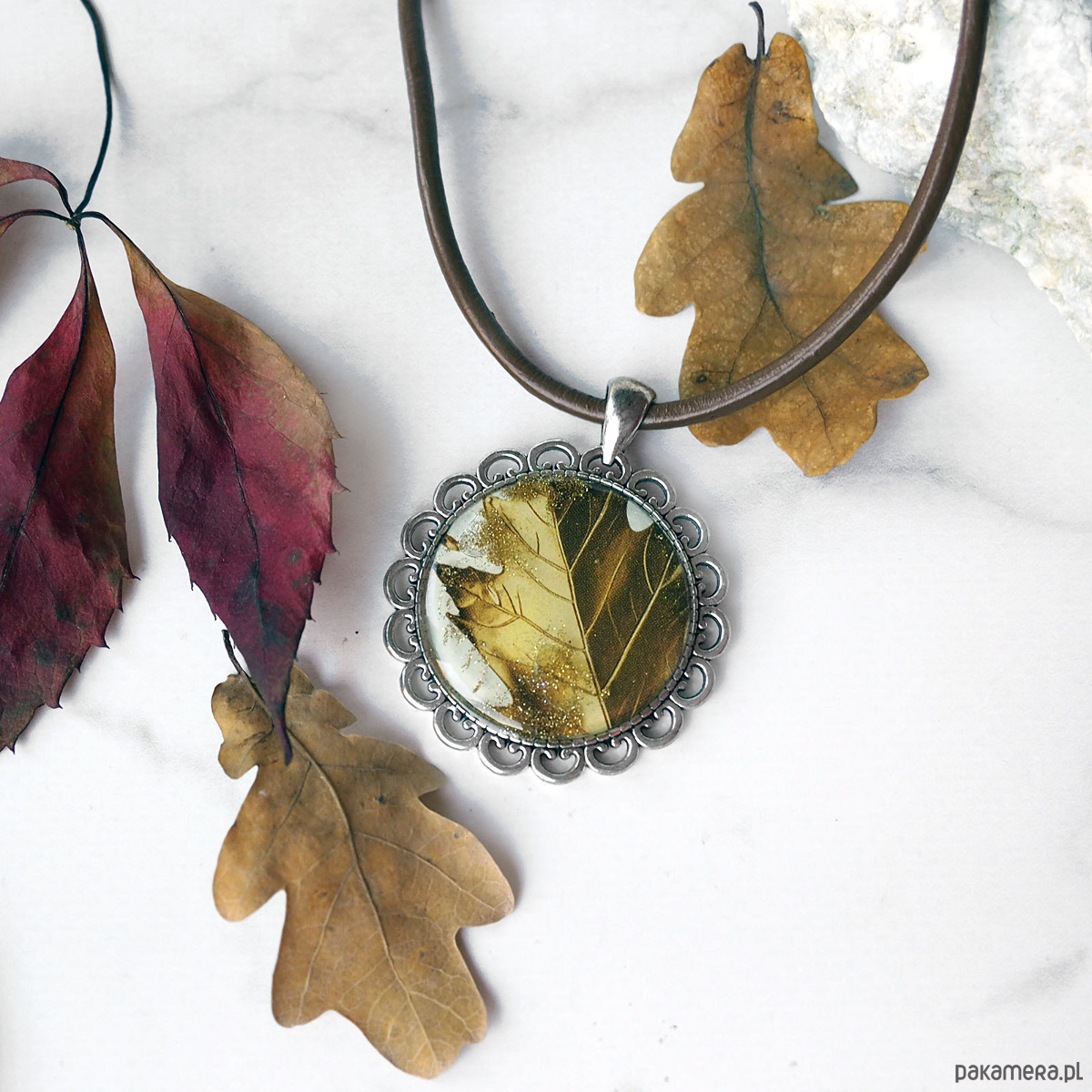 NIEZWYKŁY NASZYJNIK Z LIŚCIEM - artystyczny unikat
