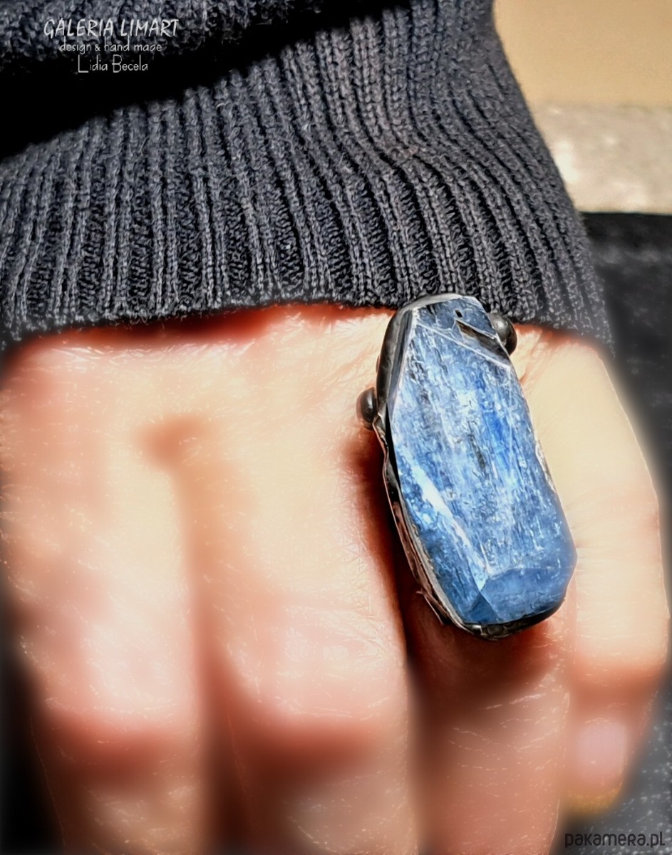Niezwykły pierścień z okazałym dorodnym kianitem handmade PREZENT lux UNIKAT