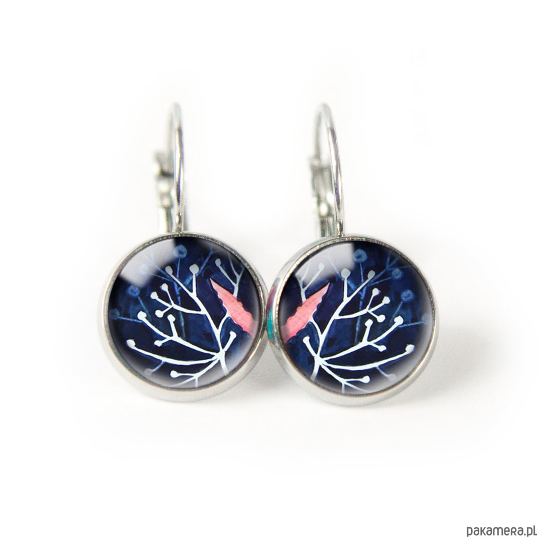 Unikatowe kolczyki wiszące z autorską ilustracją zatopioną pod szkiełkiem. Urocze malutkie ozdoby w pięknych kolorach, rewelacyjny prezent na każdą okazję!
