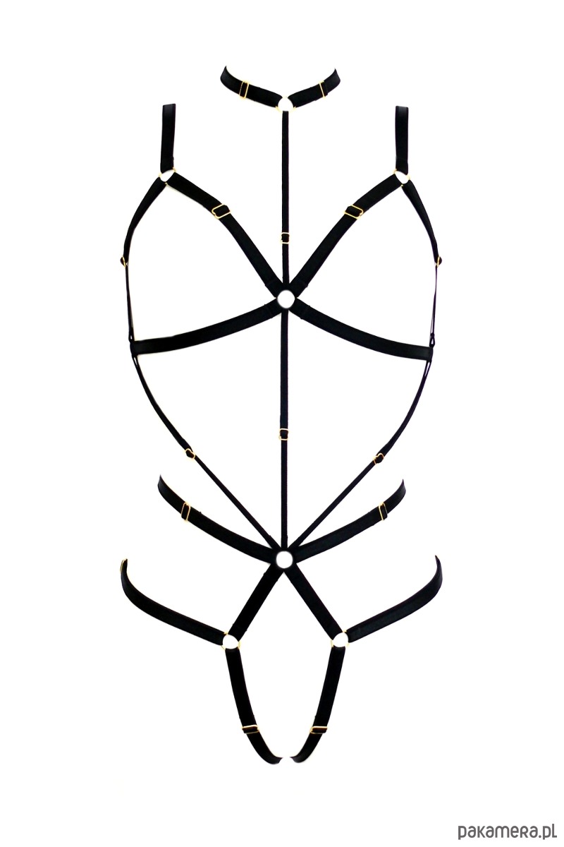 Full Body Harness to ozdobna uprząż w stylu body zakładana na gołe ciało lub na bieliznę. Uszyta z bardzo wytrzymałej i jednocześnie delikatnej dla ciała taśmy elastycznej pochodzącej z Czech. Regulowane paseczki uprzęży dopasowują do Twoich potrzeb, a każdy klient będzie mógł ją zacisnąć lub poluzować zgodnie ze swoimi potrzebami. Seksowne paseczki to uwodzicielski i prowokacyjny dodatek nie tylko na wyjątkowe okazje.