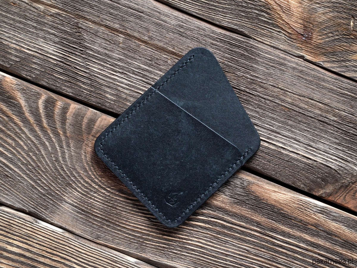 Wykonany w całości ręcznie z włoskiej skóry Maya. Portfel posiada łącznie 3 kieszonki, 2 przeznaczone na karty lub wizytówki oraz dodatkową na karty, wizytówki, złożone banknoty lub drobne notatki.
