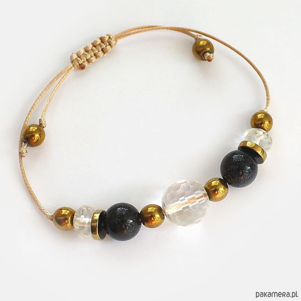 Rodzaj produktu: bransoletka shamballa z regulacją na woskowanym złotym sznurku
