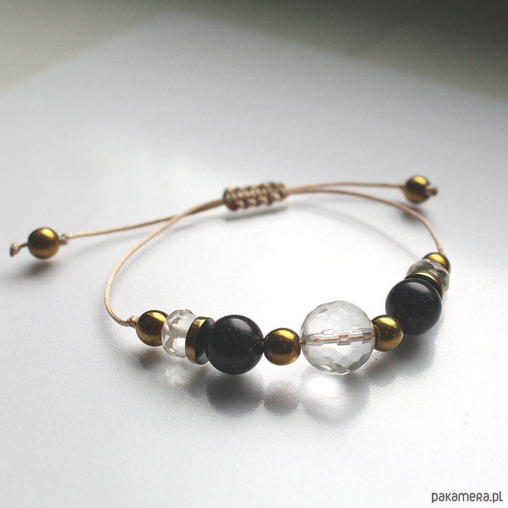 Energetyczna bransoletka wykonana techniką shamballa z fasetowanym kryształem górskim, nocą Kairu, turmalinem i hematytem pozłacanym 24k złotem. Wspierająca równowagę trzeciego oka i korony. Oczyszczona, zregenerowana, napełniona energią czystego światła o najwyższej wibracji. ❤