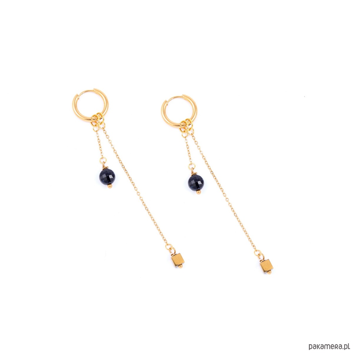 Kolczyki wykonane są z antyalergicznej stali szlachetnej pozłacanej, która nie uczula. Bez obaw, pozłocenie pięknie się utrzymuje, nie ciemnieje i nie wyciera.