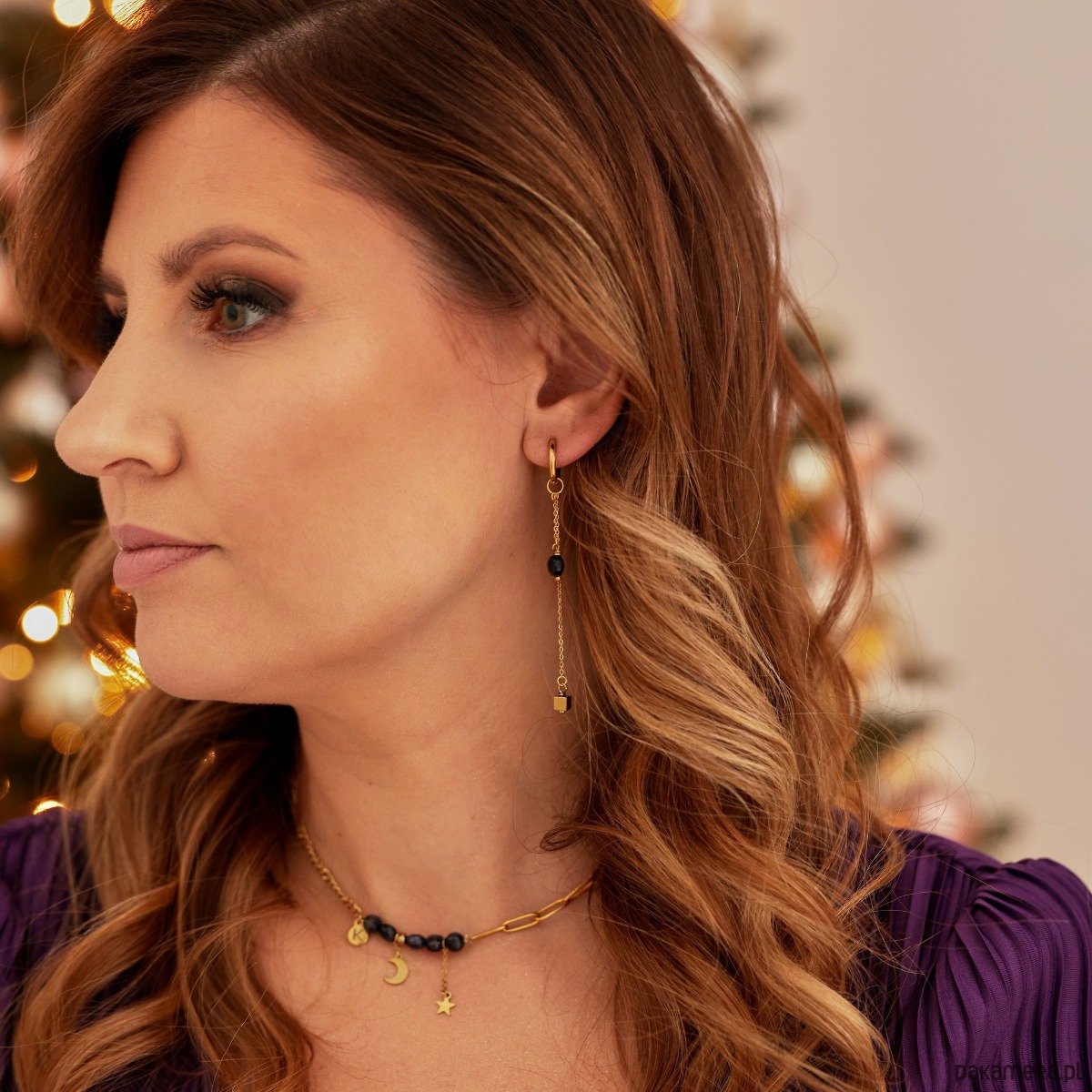 Wymiary: Kamienie: Noc Kairu/HematytWielkość kamieni: 6mm/4mmDługość: ok. 7cmWielkość kół: 12mm x 2mm lub 9mm x 2mmDługość krótszego łańcuszka: 1 cmDługość dłuższego łańcuszka: 5cmMateriał: antyalergiczna stal szlachetna