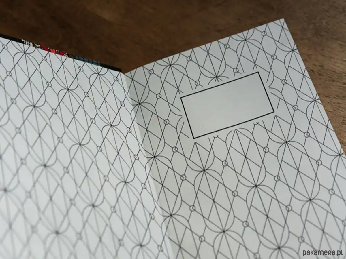 - środek: wykonany są z bezdrzewnego papieru o gramaturze 100g, papier ten posiada certyfikat FSC. Strony mają delikatny kremowy odcień