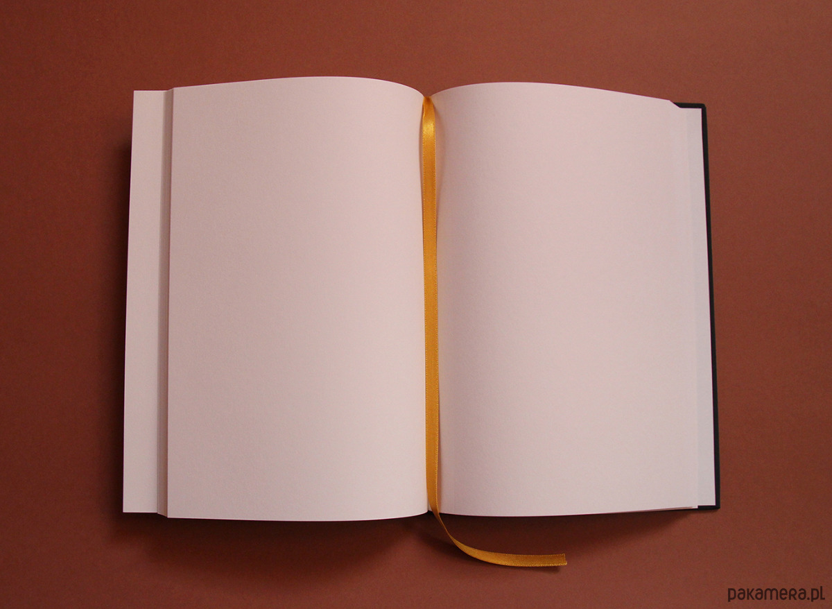 Elegancki i solidny notatnik w twardej oprawie z gumką i wstążką.
