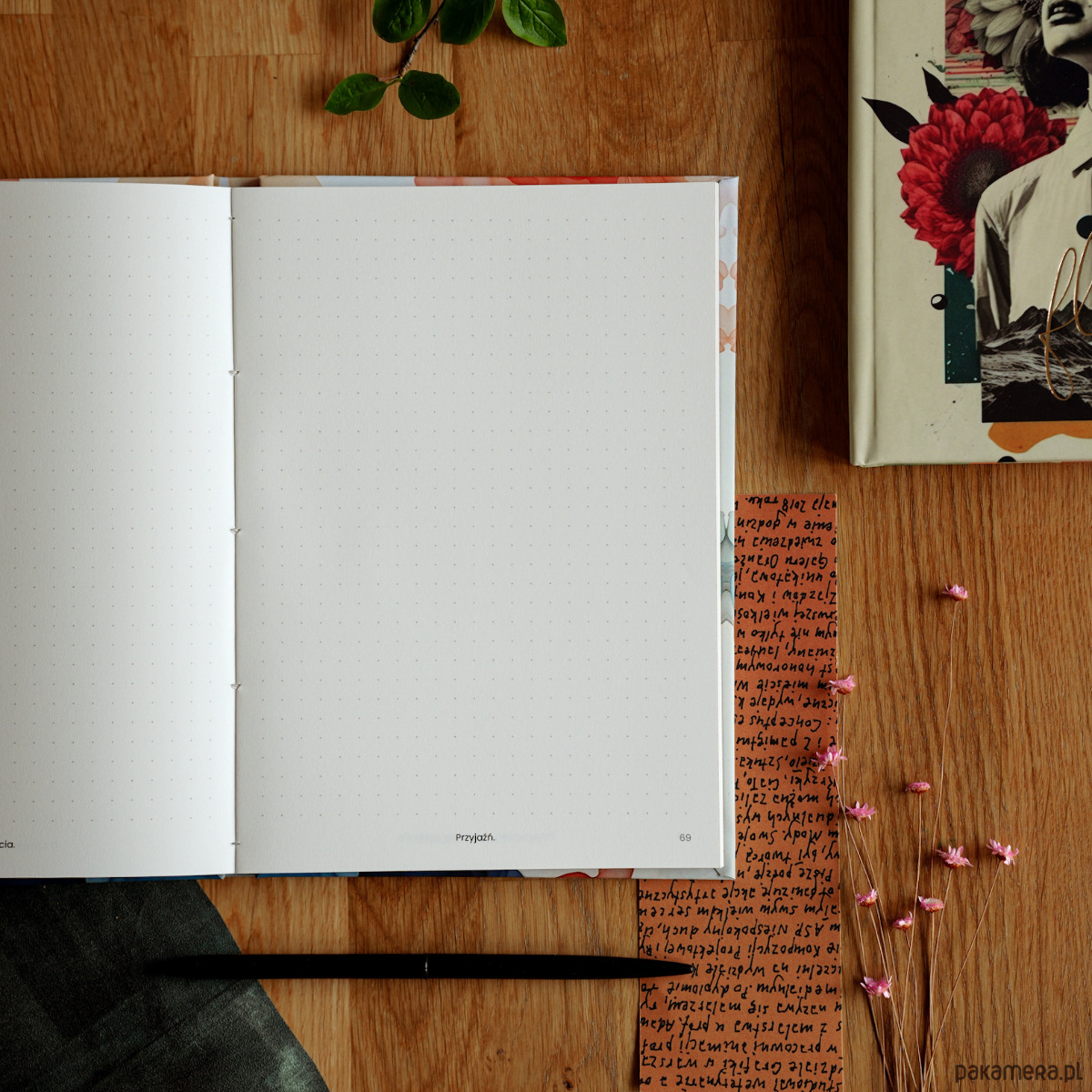 > Dodatkowo, w notesie przeplatają się wyjątkowe kolaże i cytaty.