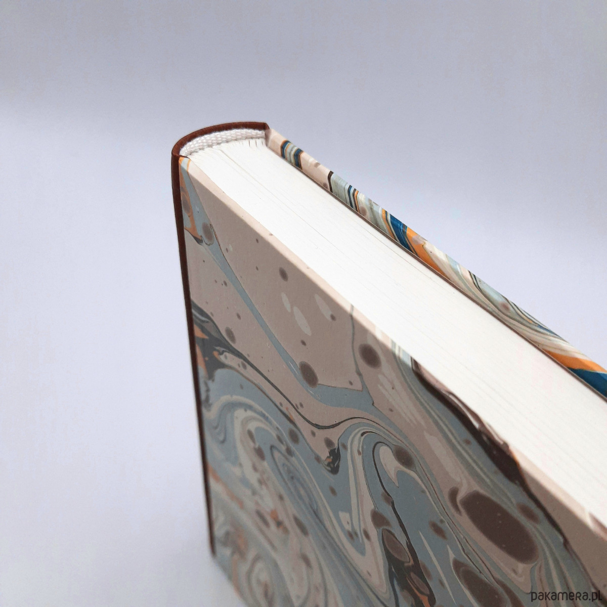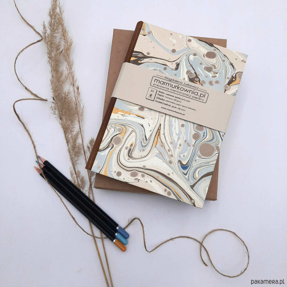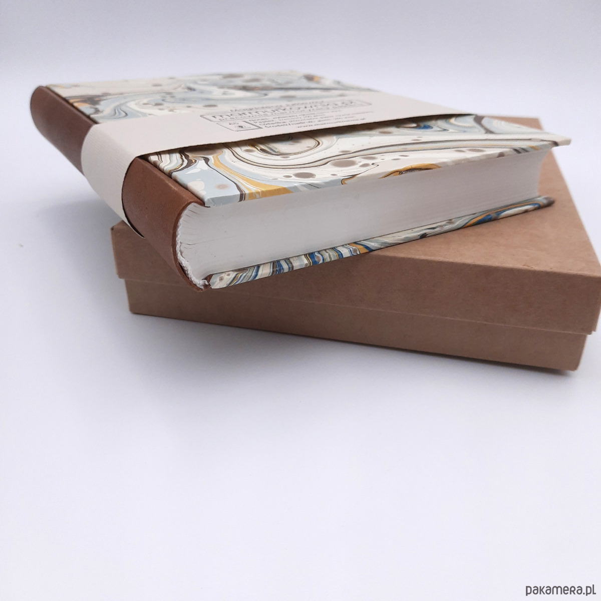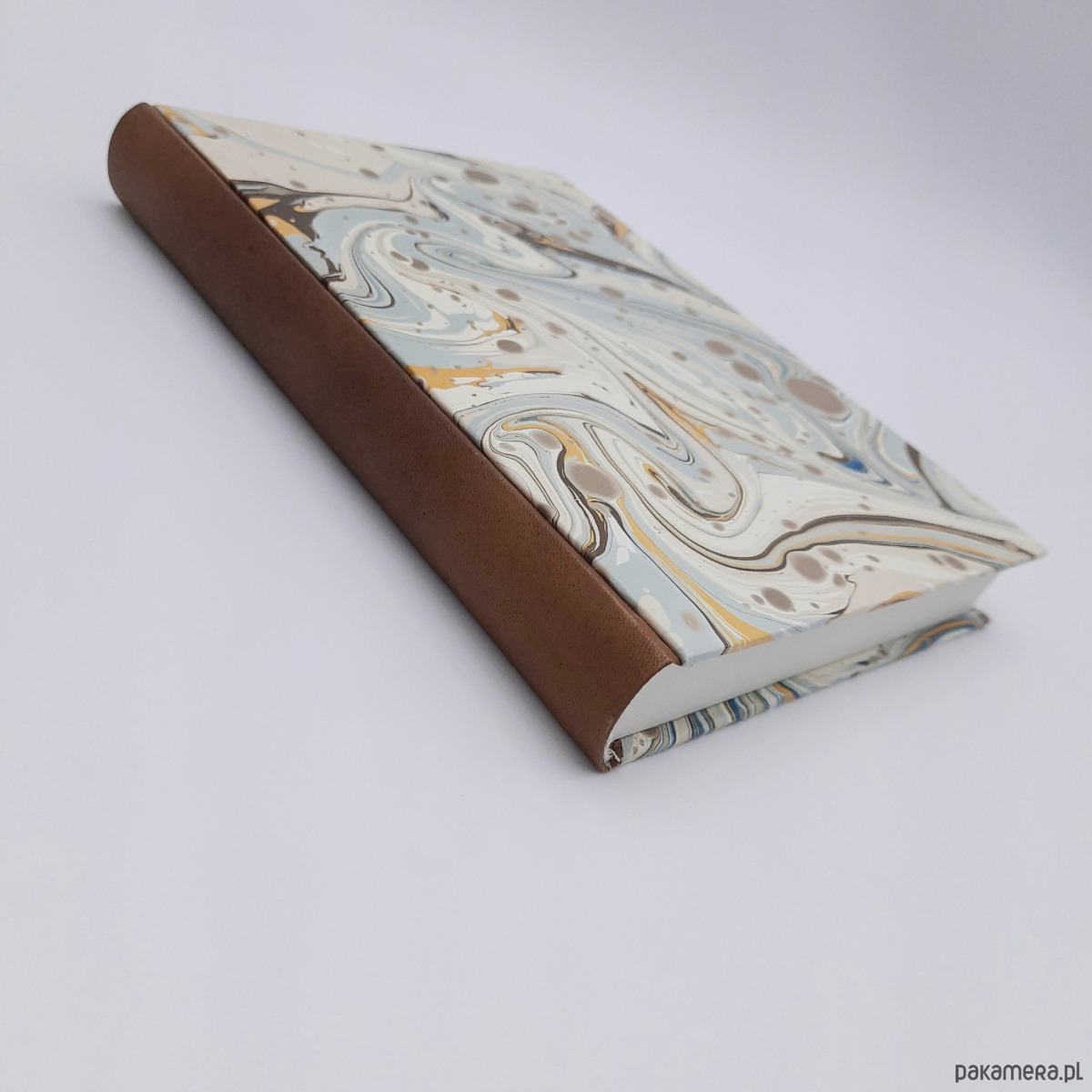 Notes, szkicownik, ręcznie wykonany, w twardej oprawie oklejonej skórą naturalną, oraz papierem barwionym w technice marmoryzacji, który maluję w mojej pracowni.
