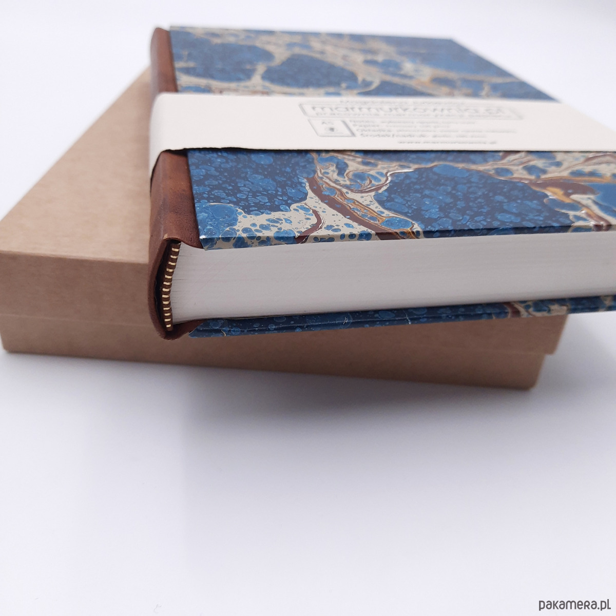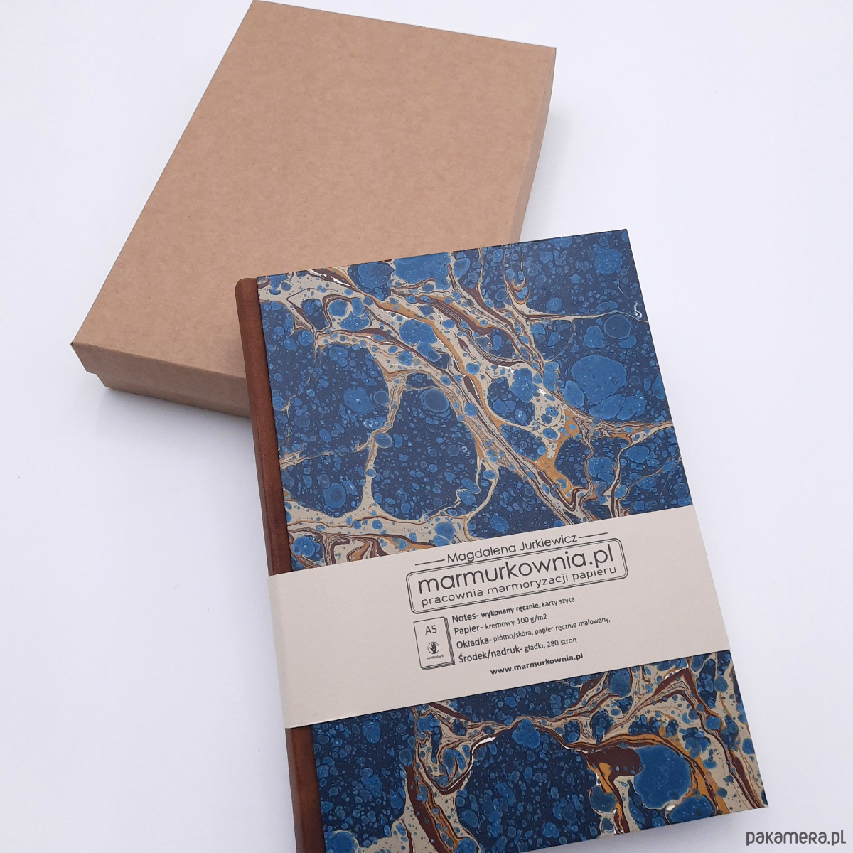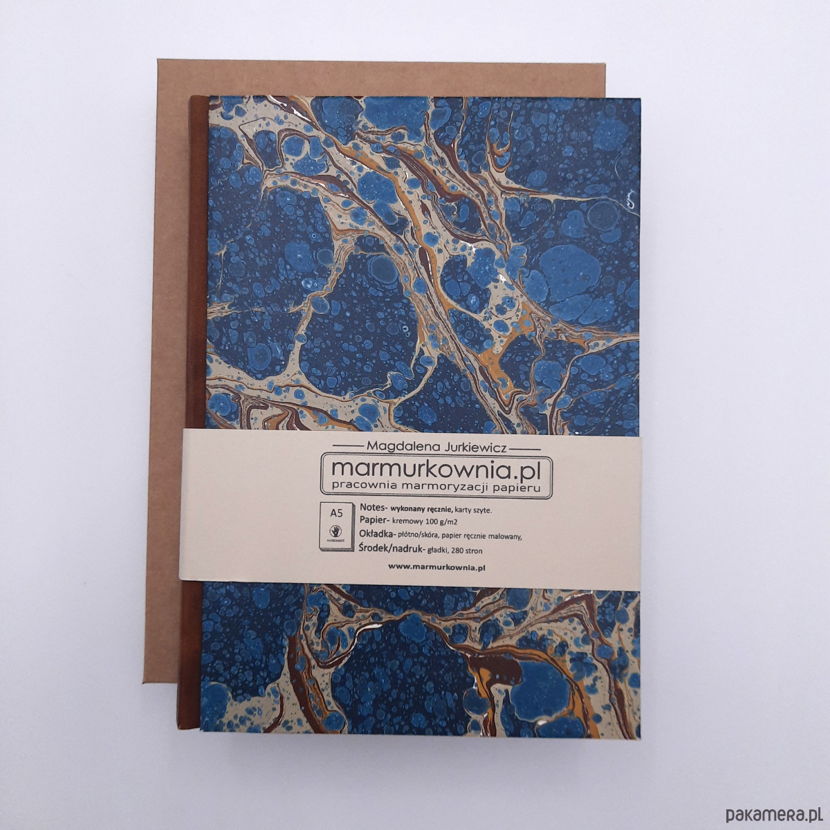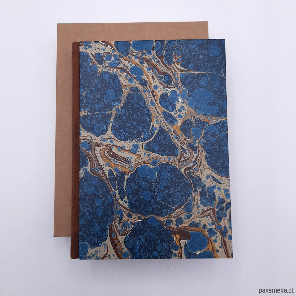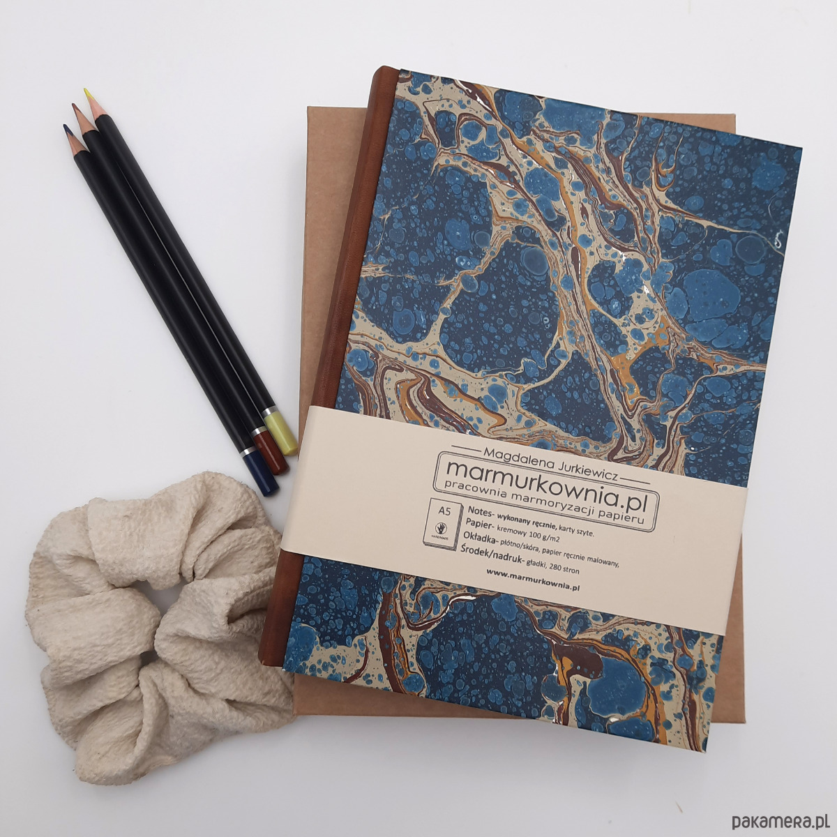 Notes, szkicownik, ręcznie wykonany, w twardej oprawie oklejonej skórą naturalną, oraz papierem barwionym w technice marmoryzacji, który maluję w mojej pracowni.