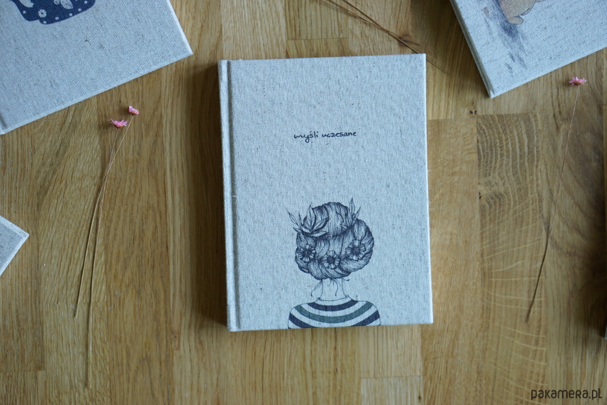 Wyjątkowy, ręcznie wykonany, lniany notes gładki w środku.