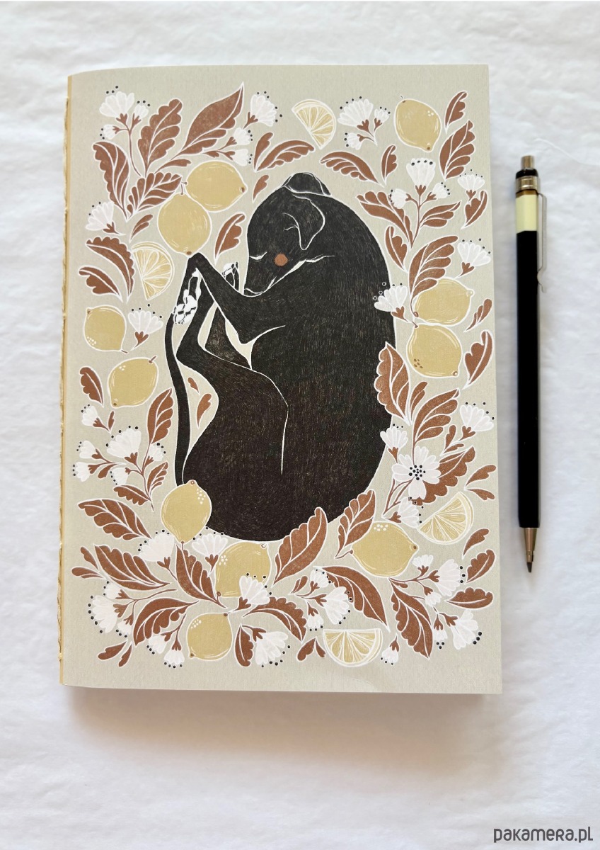 Notes z wzorem przedstawiającym charcika w cytrynkach będzie idealnym prezentem dla miłośników psów.