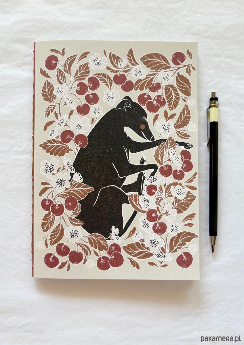 Notes z wzorem przedstawiającym charcika w wiśniach będzie idealnym prezentem dla miłośników psów.