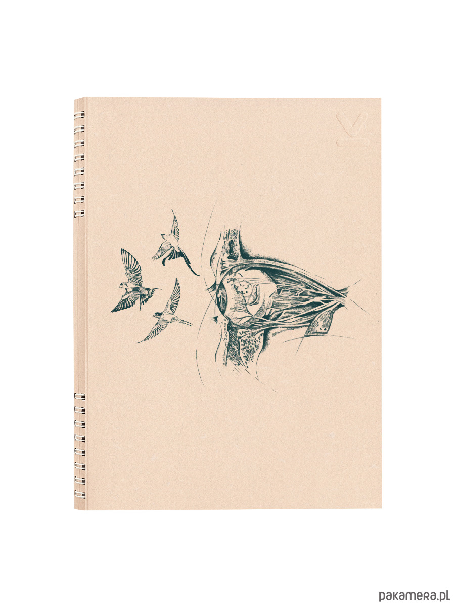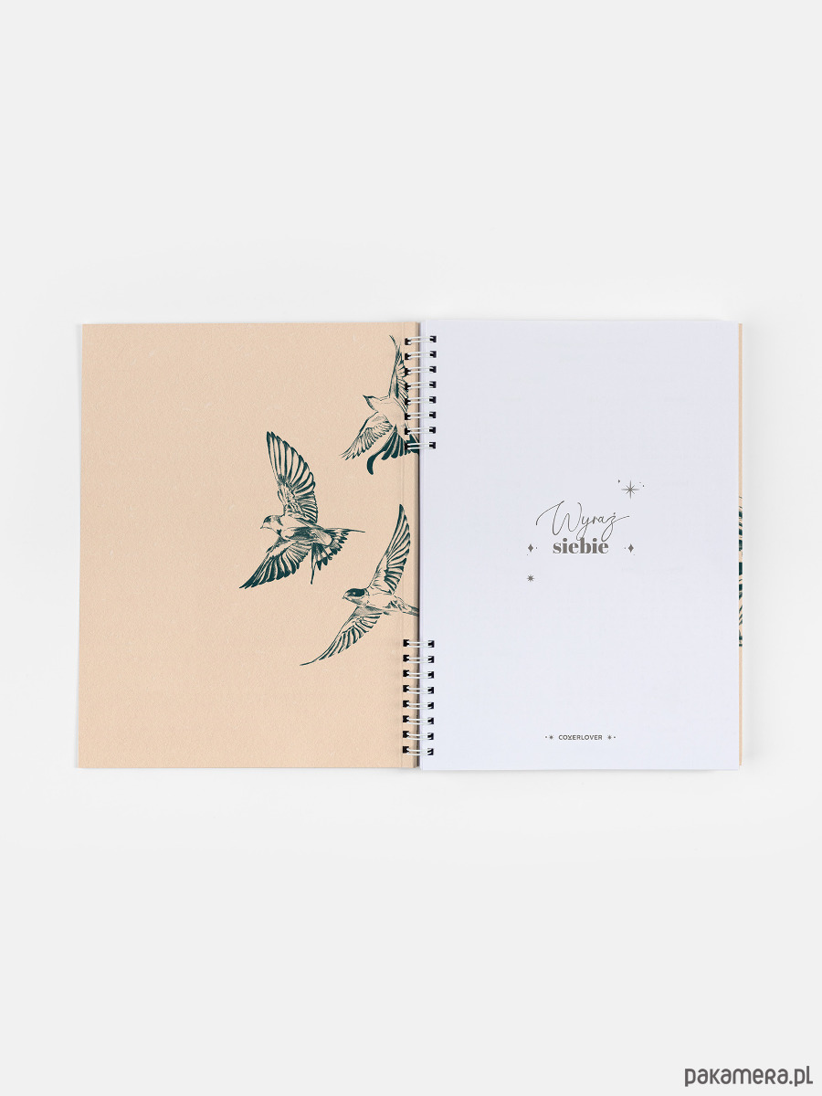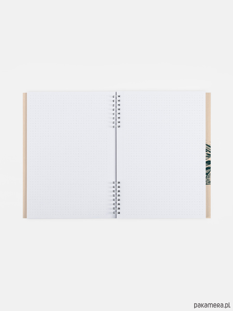 Dzięki ukrytej wewnątrz spirali, notes rozkłada się na płasko. Każda ze stron posiada także perforację ułatwiającą dokładne odrywanie kartek, a z tyłu notesu znajdziesz specjalną kieszonkę, która pomieści wszelkie luźne zapiski, rachunki, czy na przykład ulubione instaxy. :)