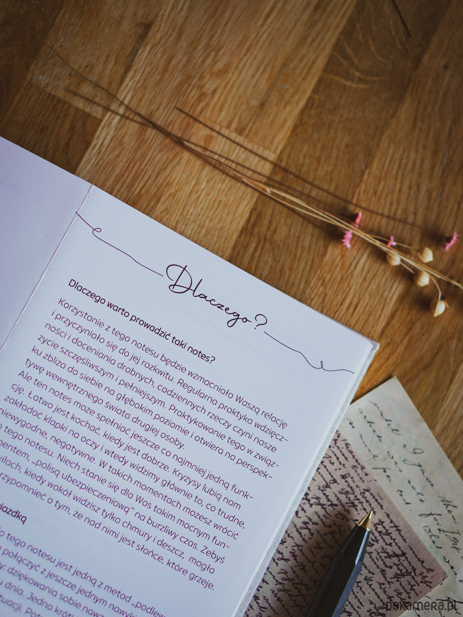 Ale ten notes może spełniać jeszcze co najmniej jedną funkcję. Łatwo jest kochać, kiedy jest dobrze. Kryzysy lubią nam zakładać klapki na oczy i wtedy widzimy głównie to, co trudne, niewygodne, negatywne. W takich momentach możesz wrócić do tego notesu. Niech stanie się dla Was takim mocnym fundamentem, „polisą ubezpieczeniową” na burzliwy czas. Żebyś w chwilach, kiedy wokół widzisz tylko chmury, mogła sobie przypomnieć o tym, że nad nimi jest słońce, które grzeje :)
