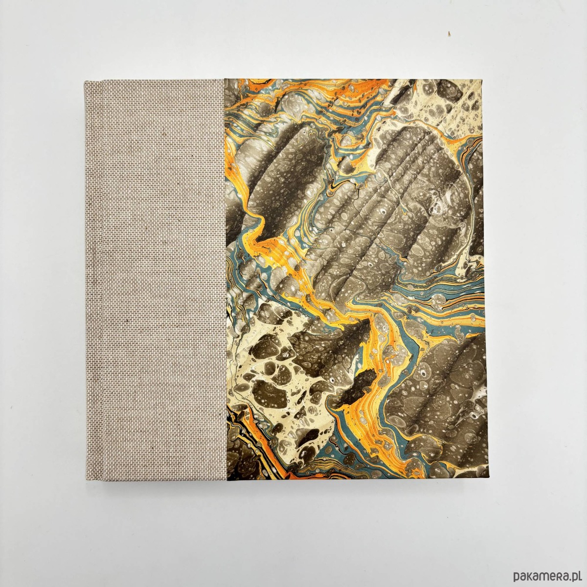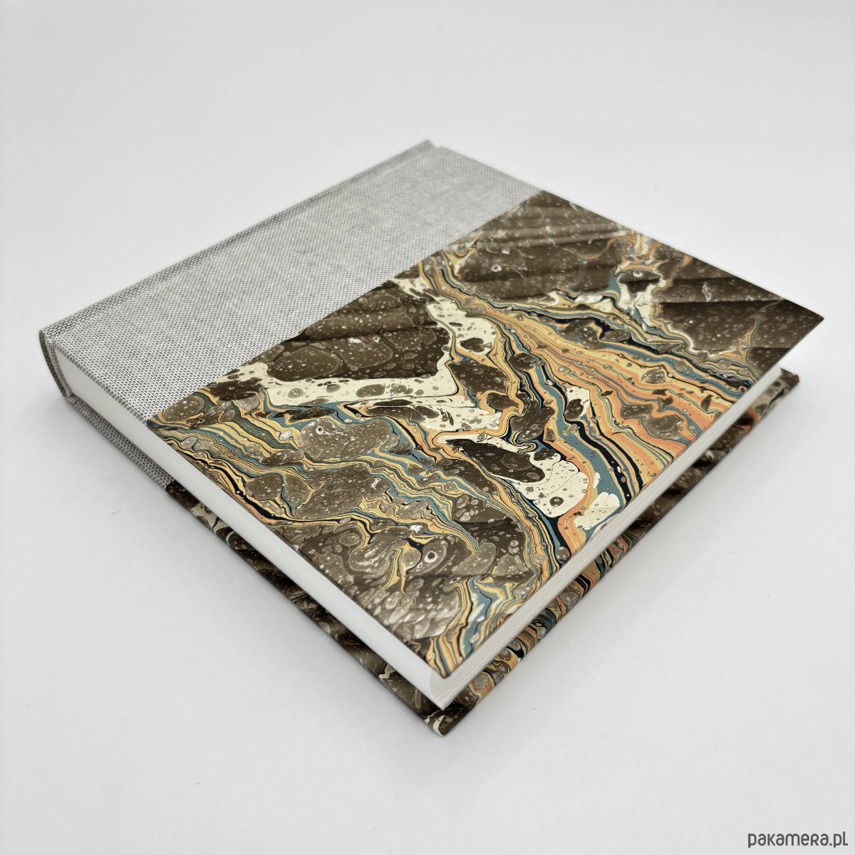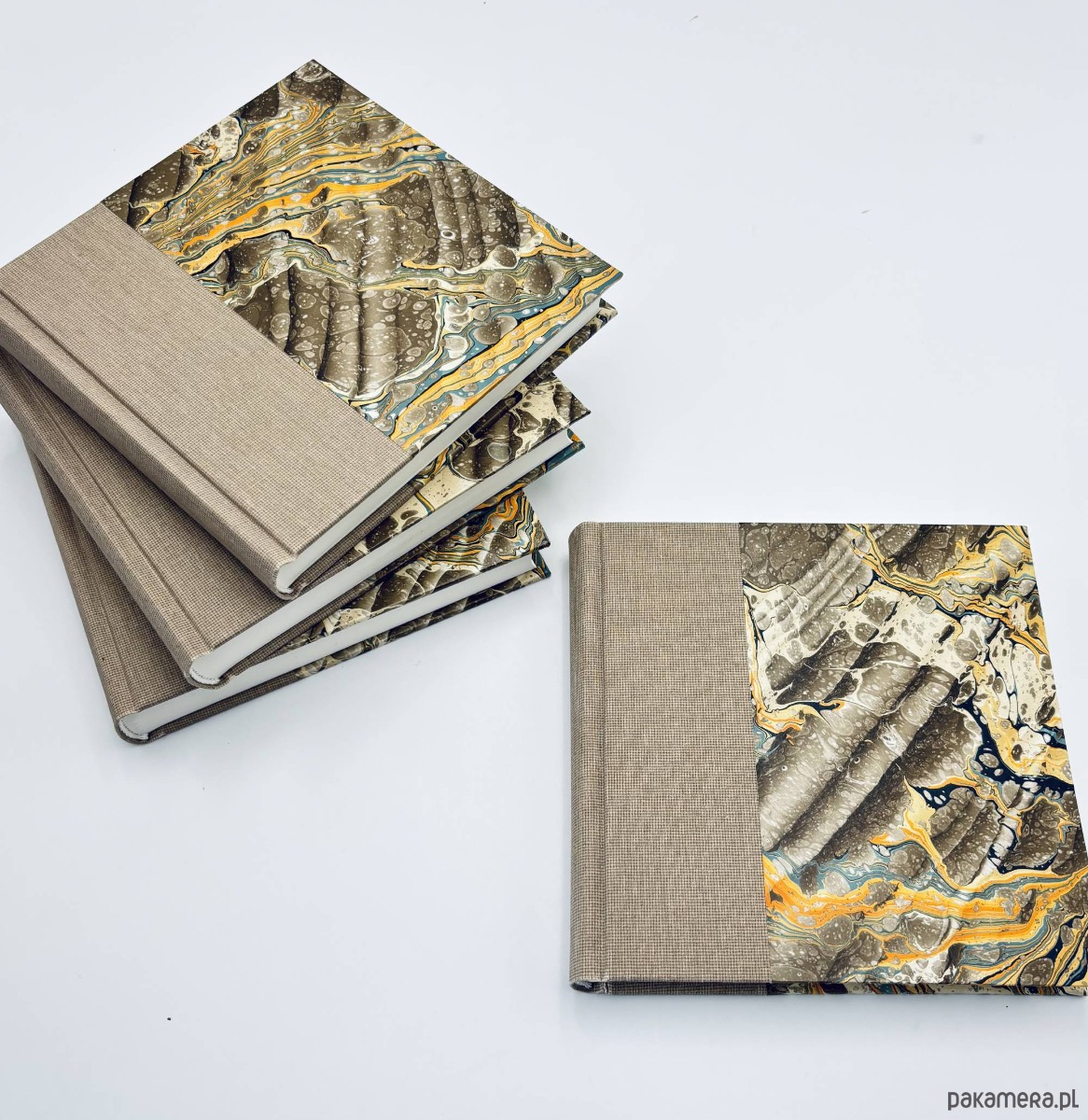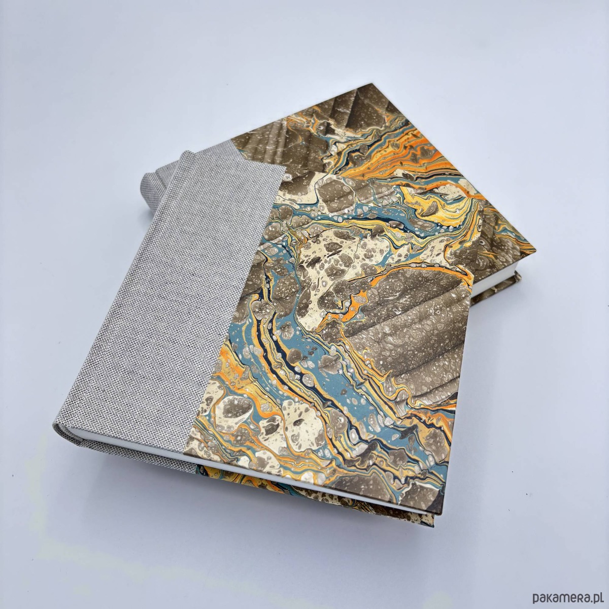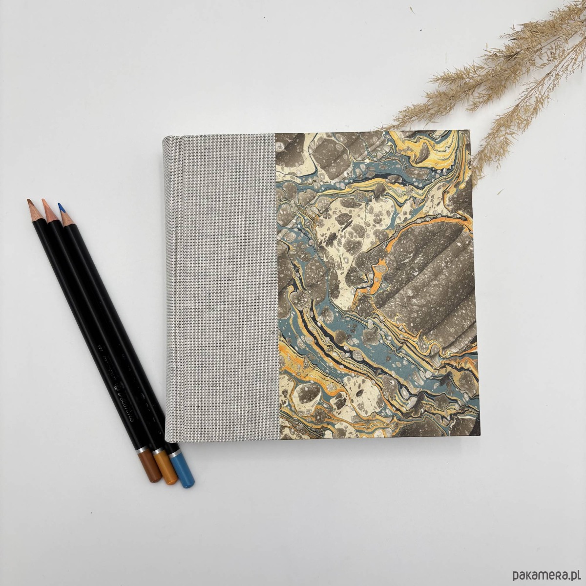 Notes, szkicownik, ręcznie wykonany, w twardej oprawie oklejonej płótnem, oraz papierem barwionym w technice marmoryzacji, który maluję w mojej pracowni.