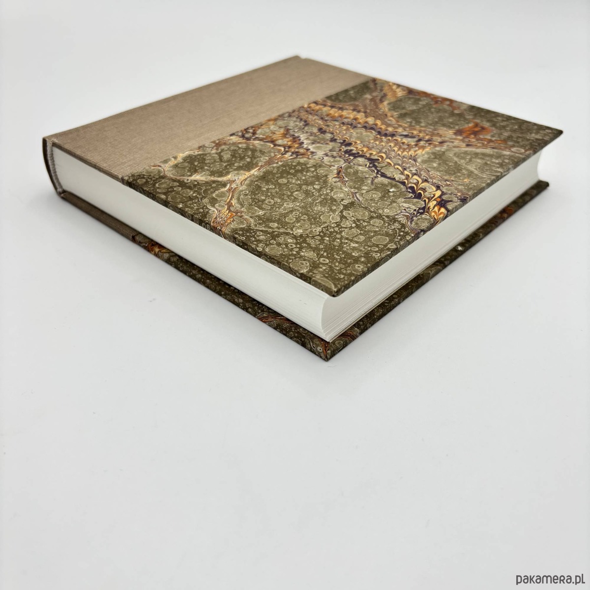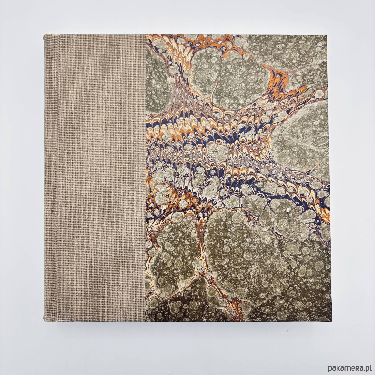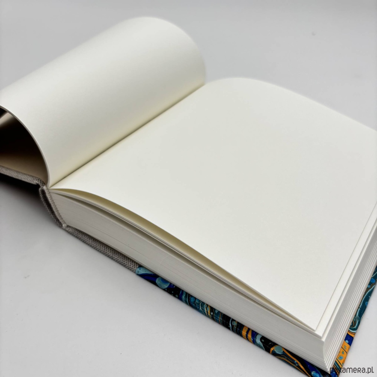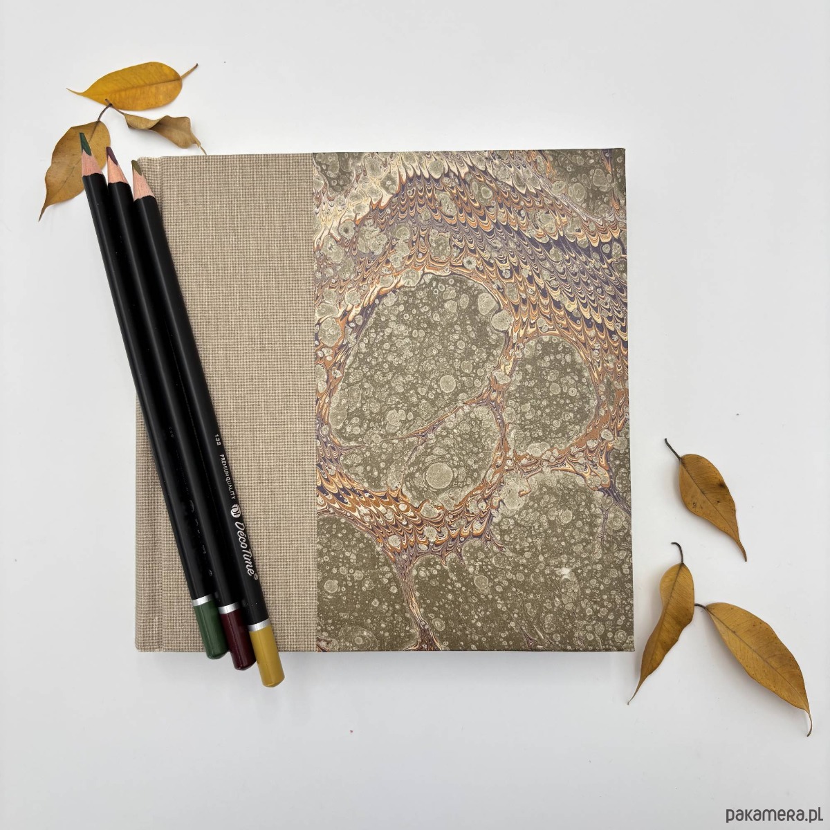 Notes, szkicownik, ręcznie wykonany, w twardej oprawie oklejonej płótnem, oraz papierem barwionym w technice marmoryzacji, który maluję w mojej pracowni.