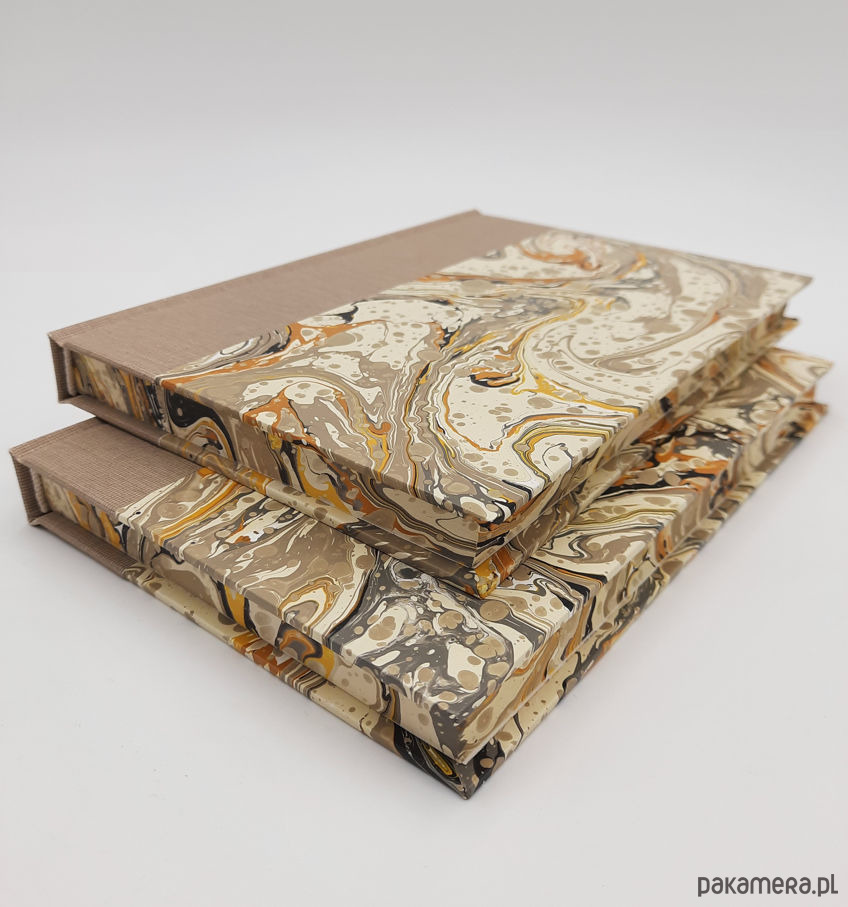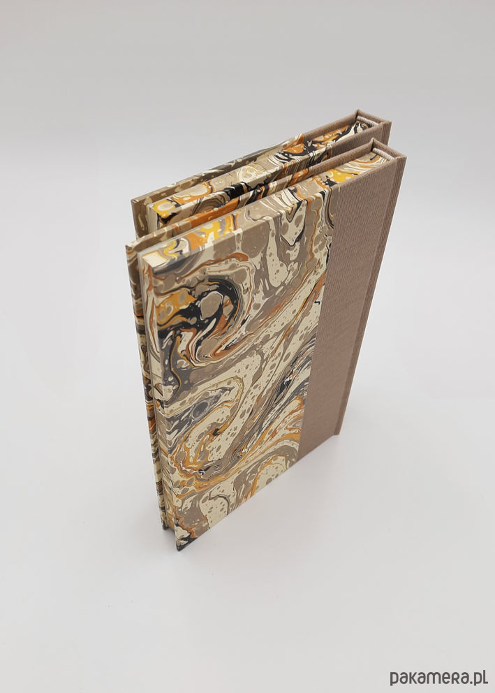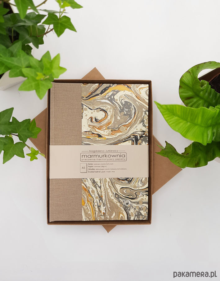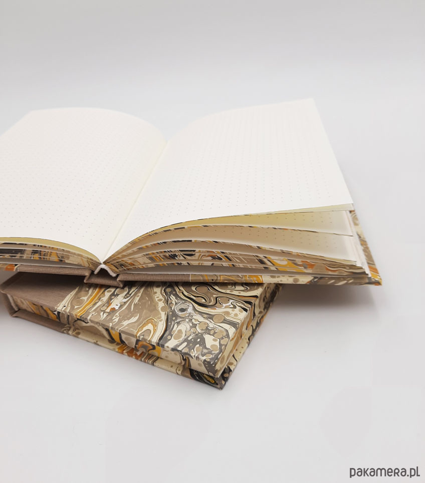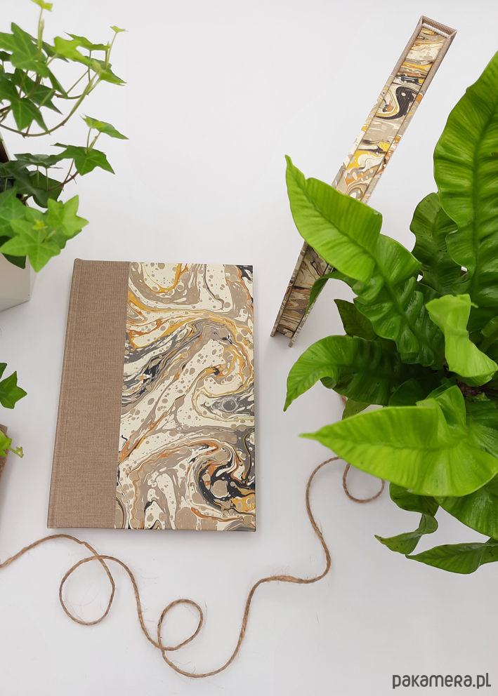 Notes, szkicownik, ręcznie wykonany, w twardej oprawie oklejonej płótnem oraz papierem barwionym w technice marmoryzacji, który maluję w mojej pracowni.