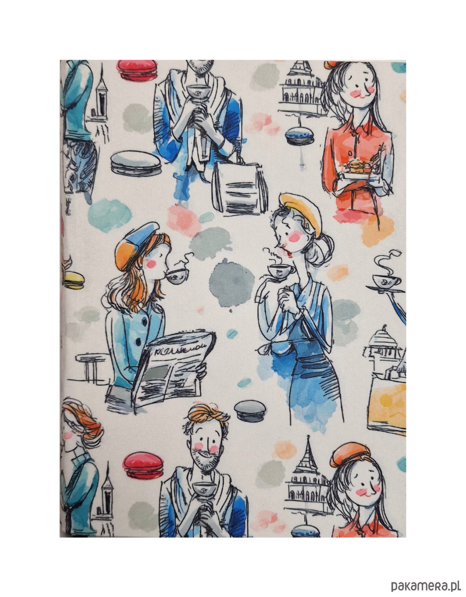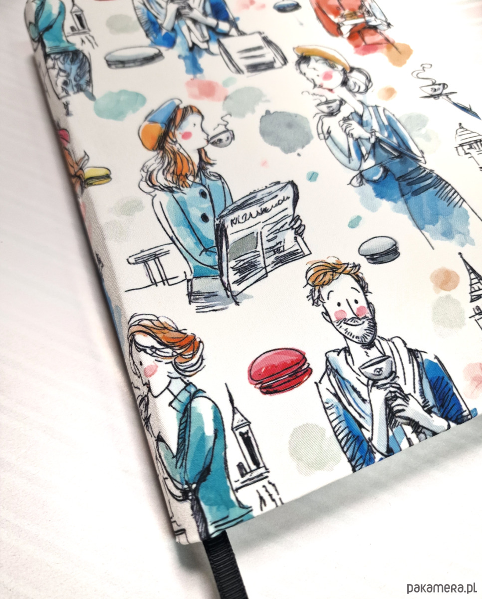 Poczuj klimat paryskiej kawiarni za każdym razem, gdy sięgasz po ten notes. Kolorowa okładka z ilustracjami ludzi popijających kawę, jedzących makaroniki i spacerujących po mieście od razu poprawia nastrój i aż zachęca, żeby coś zapisać.