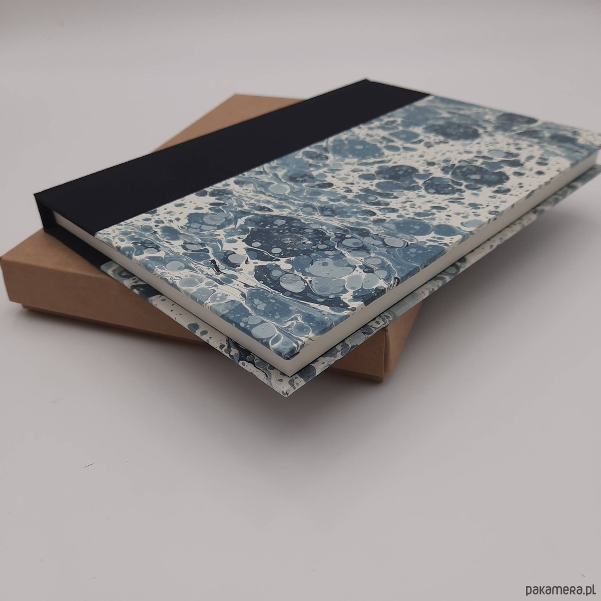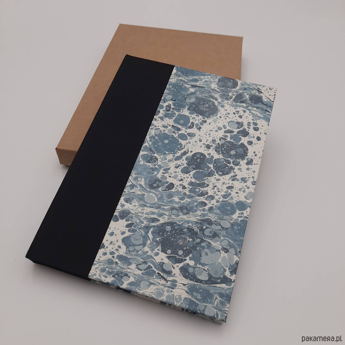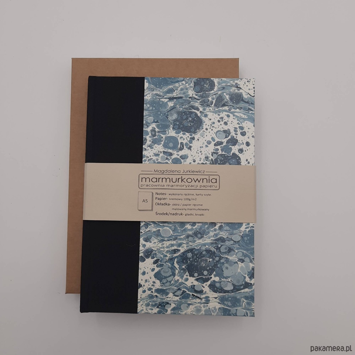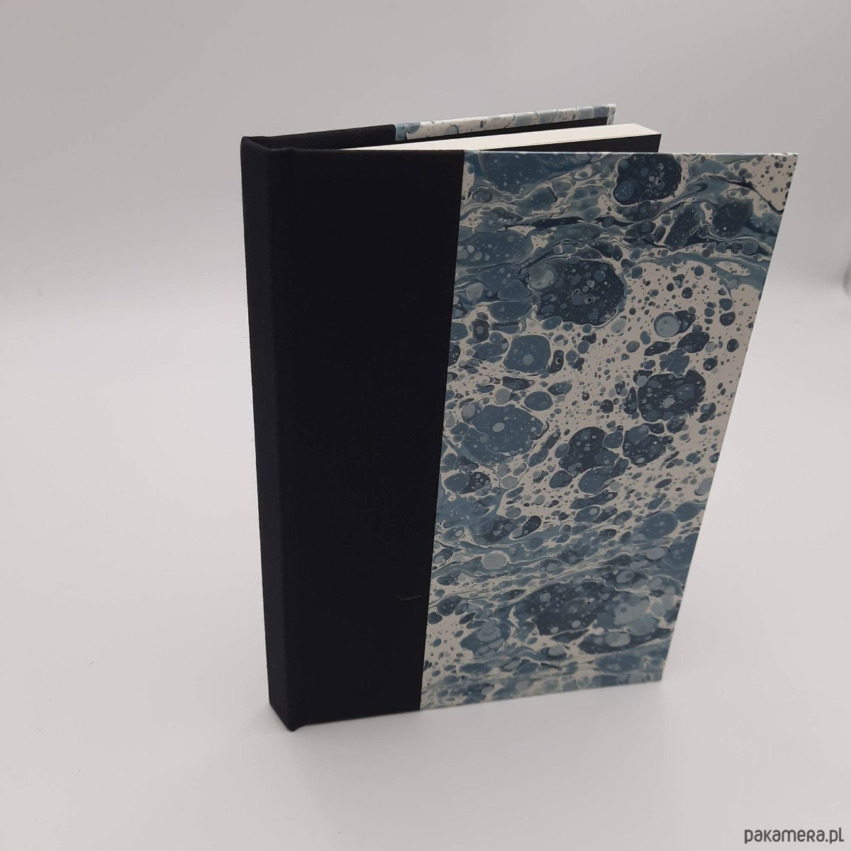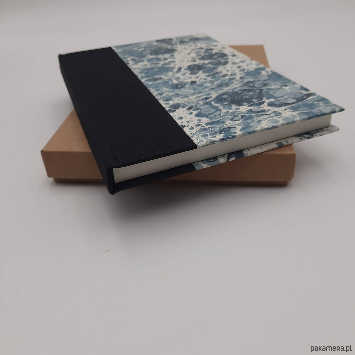 Notes, szkicownik, ręcznie wykonany, w twardej oprawie oklejonej płótnem oraz papierem barwionym w technice marmoryzacji, który maluję w mojej pracowni.