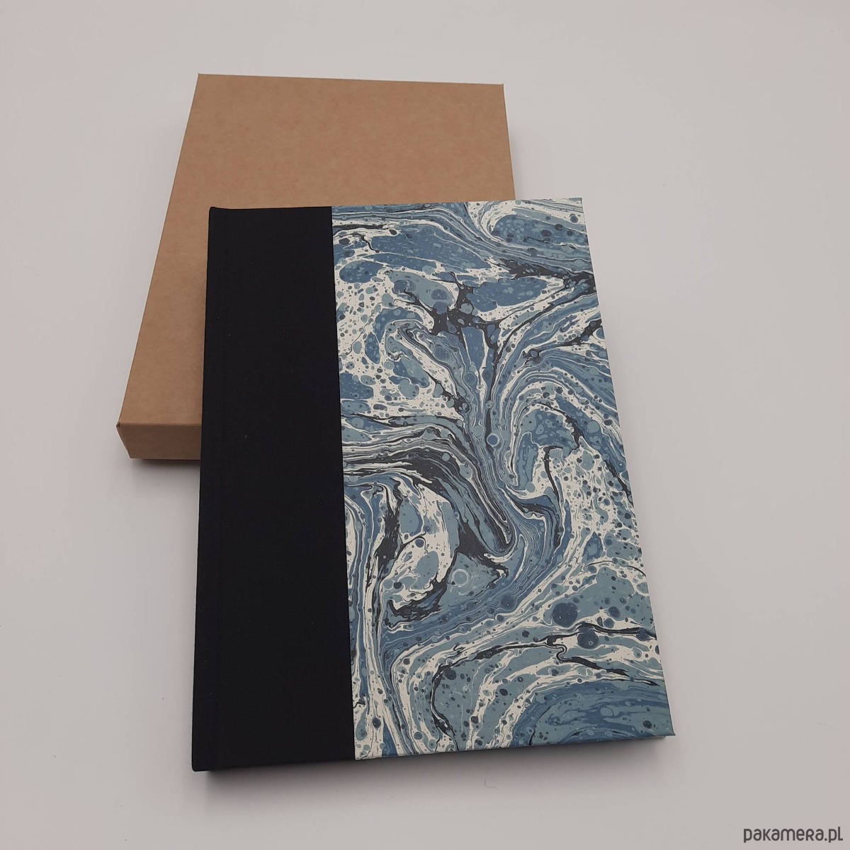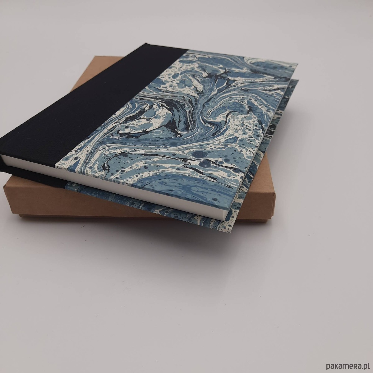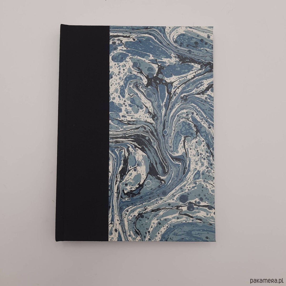 Notes, szkicownik, ręcznie wykonany, w twardej oprawie oklejonej płótnem oraz papierem barwionym w technice marmoryzacji, który maluję w mojej pracowni.