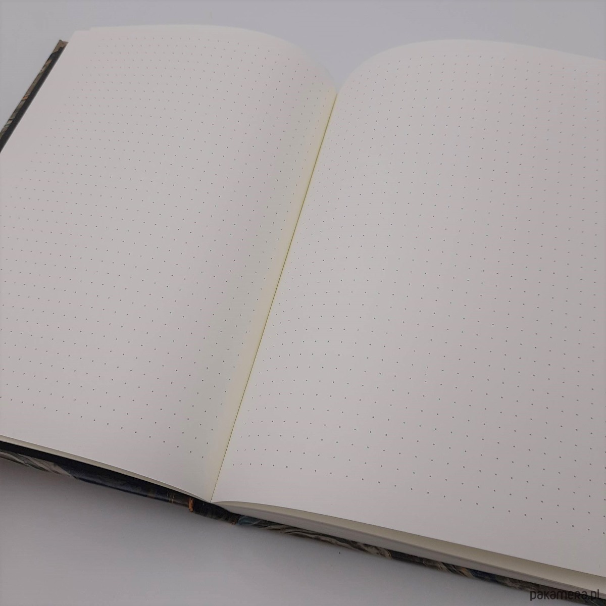 Środek notesu zawiera 200 stron z nadrukiem w kropki,