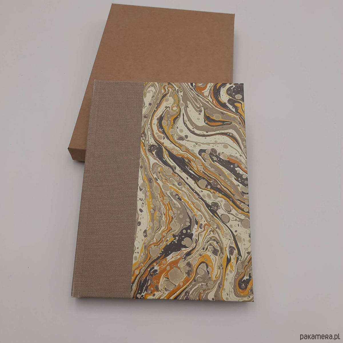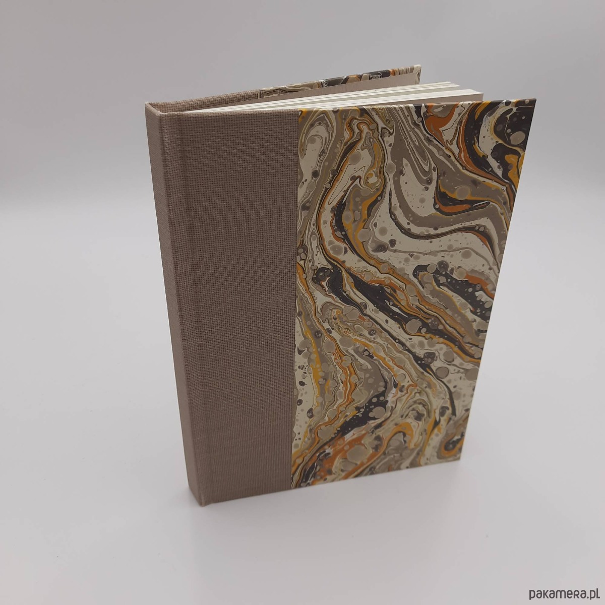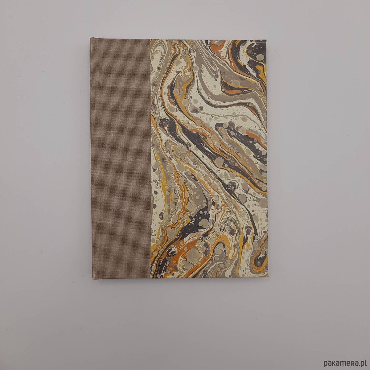 Notes, szkicownik, ręcznie wykonany, w twardej oprawie oklejonej płótnem oraz papierem barwionym w technice marmoryzacji, który maluję w mojej pracowni.
