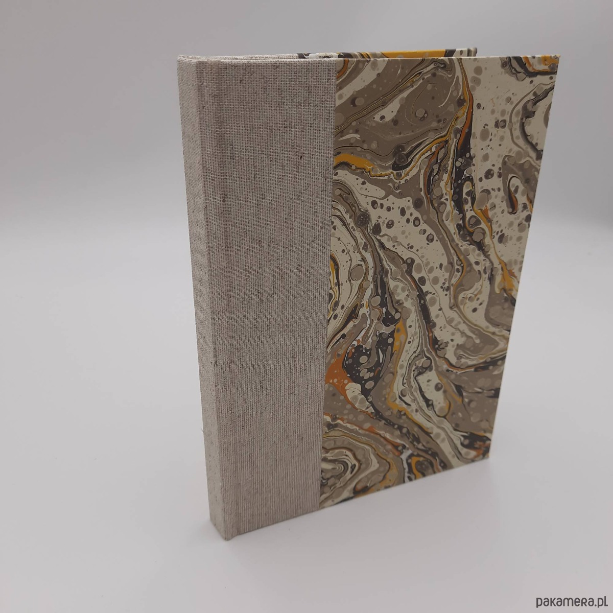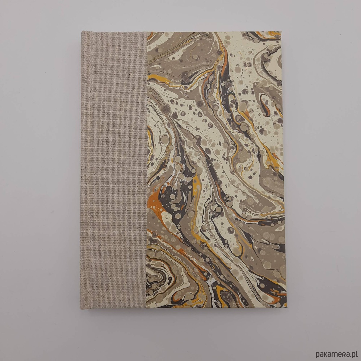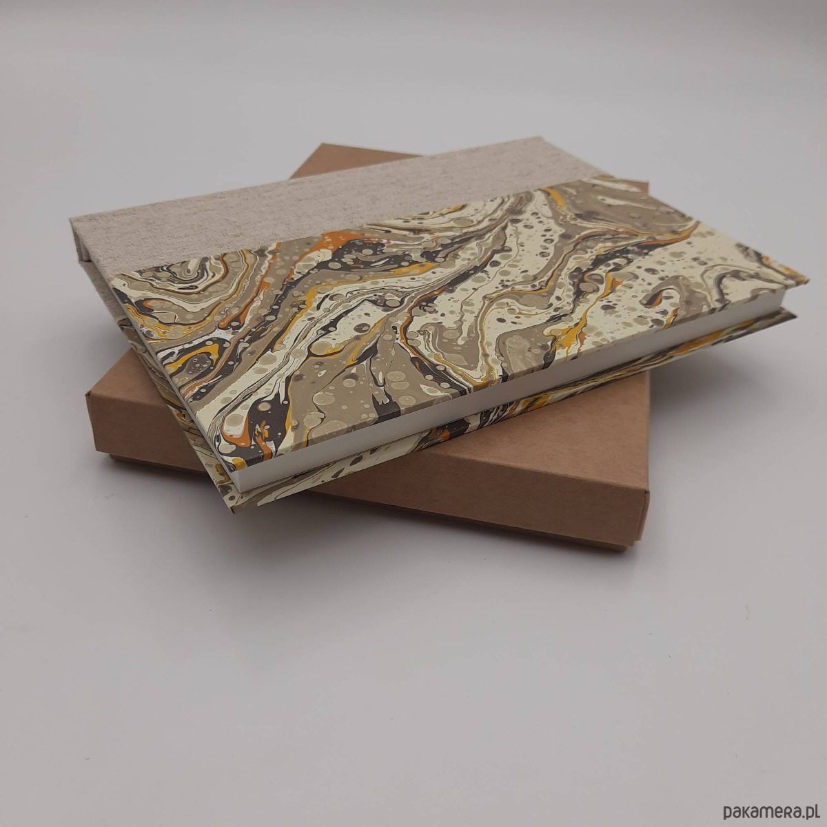 Notes, szkicownik, ręcznie wykonany, w twardej oprawie oklejonej płótnem oraz papierem barwionym w technice marmoryzacji, który maluję w mojej pracowni.