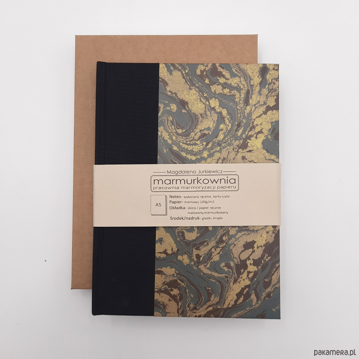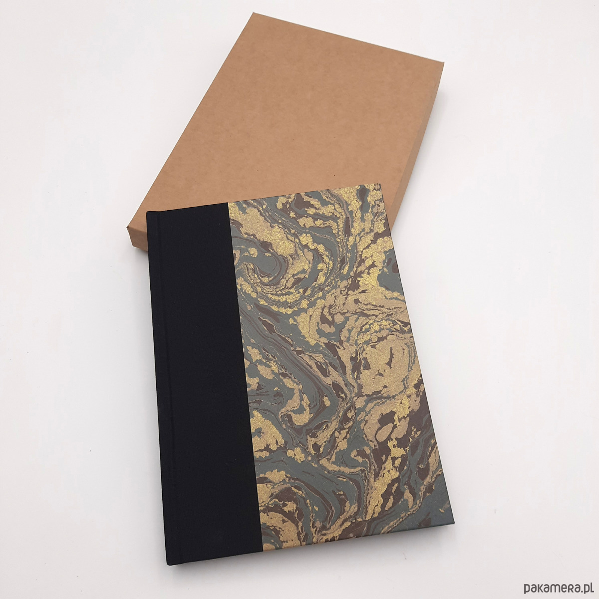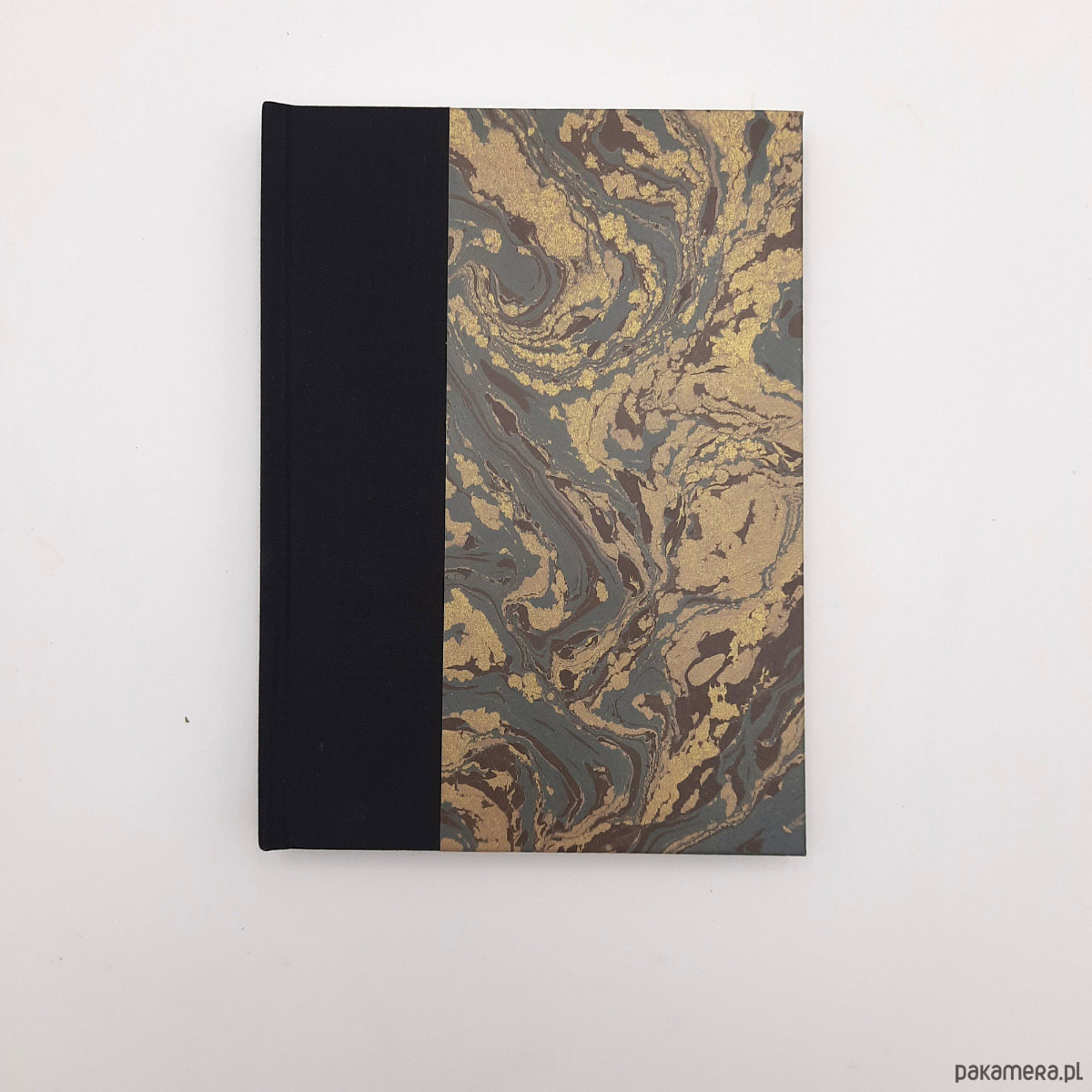 Notes, szkicownik, ręcznie wykonany, w twardej oprawie oklejonej płótnem oraz papierem barwionym w technice marmoryzacji, który maluję w mojej pracowni.