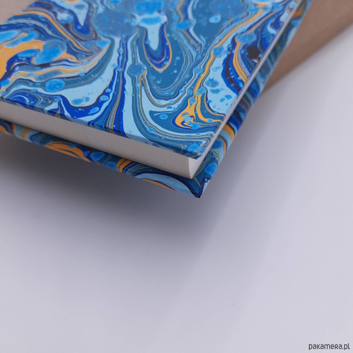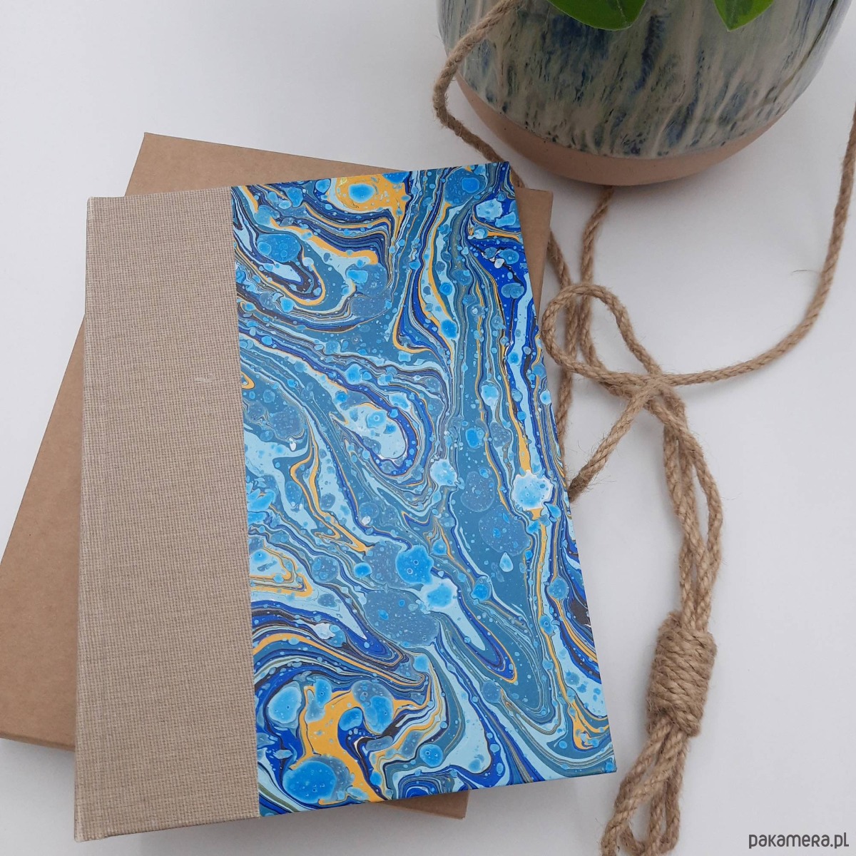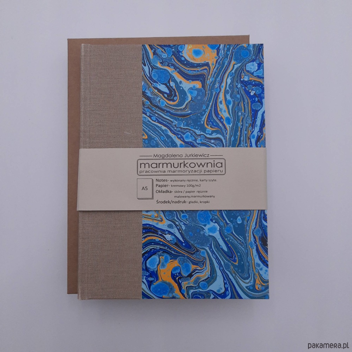 Notes, szkicownik, ręcznie wykonany, w twardej oprawie oklejonej płótnem oraz papierem barwionym w technice marmoryzacji, który maluję w mojej pracowni.