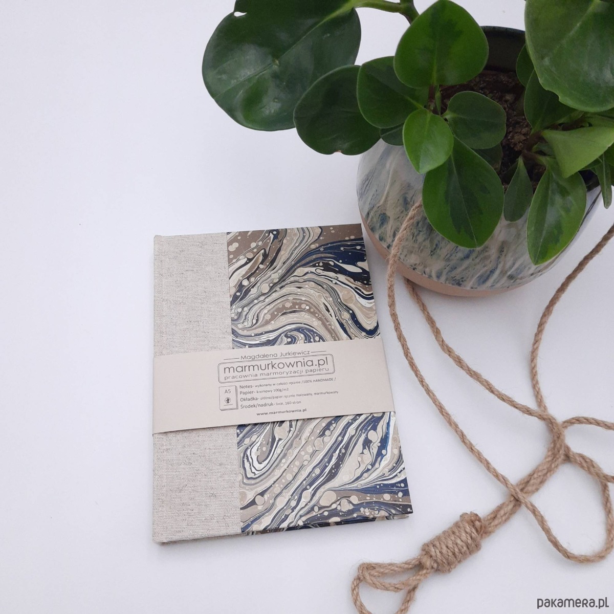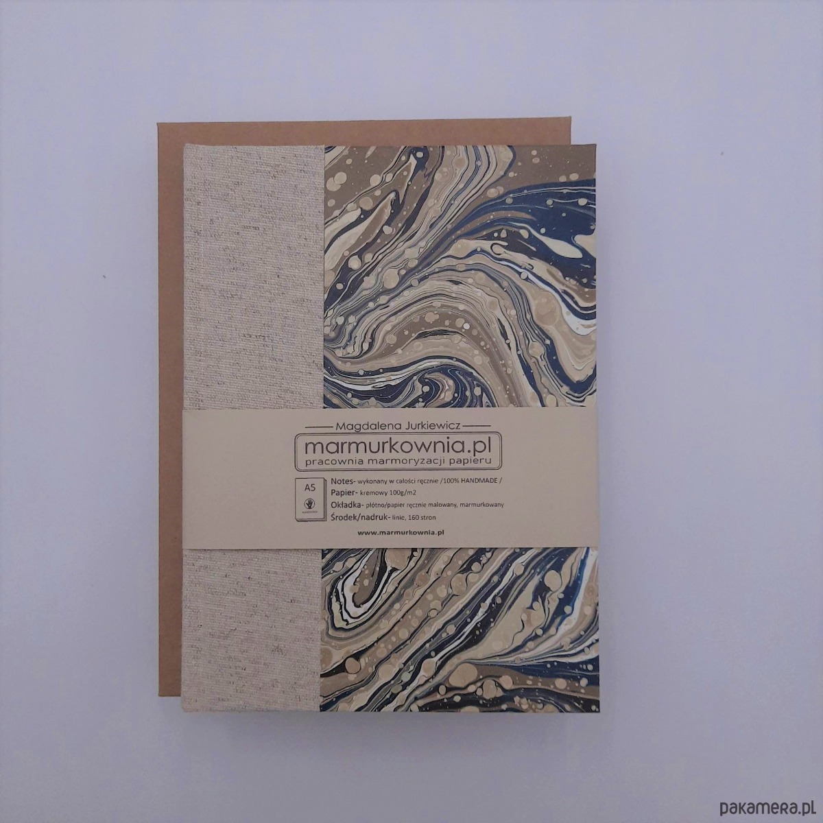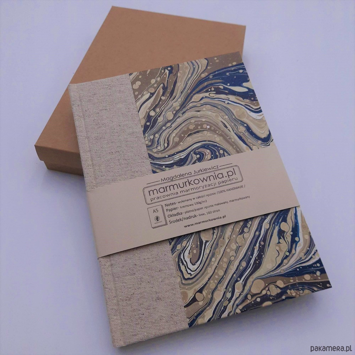 Notes, szkicownik, ręcznie wykonany, w twardej oprawie oklejonej płótnem oraz papierem barwionym w technice marmoryzacji, który maluję w mojej pracowni.